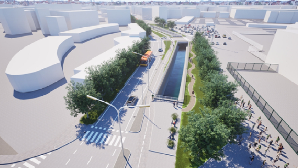 A intervento ultimato, l’area risulterà visivamente rinaturalizzata grazie allo sviluppo e alla riconfigurazione di aree verdi e l’inserimento di percorsi ciclabili e pedonali di fianco al Cavo a cielo aperto: verrà così evidenziata e messa in luce l’immagine del corso d’acqua che storicamente ha percorso via dell’Annona (si vedano render allegati).