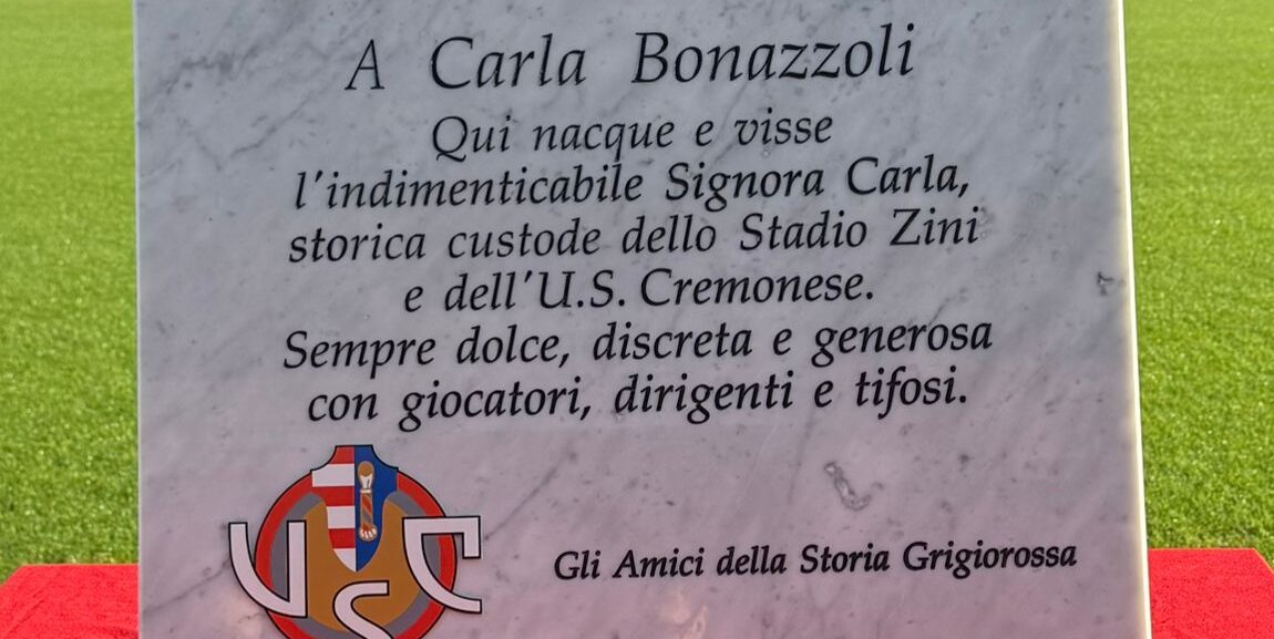 Una vita intera trascorsa sotto la tribuna centrale dello Stadio Zini, figura fondamentale per i giocatori, gli allenatori e i dirigenti che hanno rappresentato i colori grigiorossi: la signora Carla Bonazzoli, storica custode della Cremonese, scomparsa nel novembre 2019 a 96 anni, da oggi ha la sua targa commemorativa allo Zini.