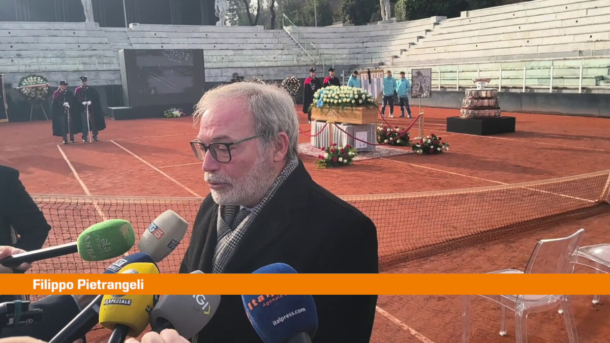 ROMA (ITALPRESS) – “Quello che ho visto in questi giorni non me l’aspettavo, è stata un’esplosione di affetto”. Così Filippo Pietrangeli, figlio del compianto Nicola, ha parlato a margine della camera ardente del padre. Al Foro Italico risuonano anche le note di Charles Aznavour: “Lo portai a un suo concerto e gli firmò due dischi”, l’aneddoto sull’ex tennista.