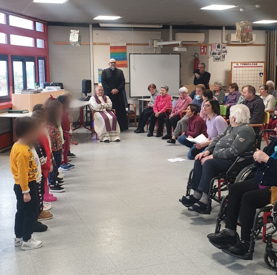 Arrivati con il pulmino messo a disposizione dall’amministrazione comunale, i bimbi hanno potuto recarsi all’Istituto portando anche i doni natalizi e con il Vescovo e Don Massimiliano hanno incontrato nel salone i nonni, parte del personale con il coordinatore Pisaroni e il Presidente Silvio Bossi.