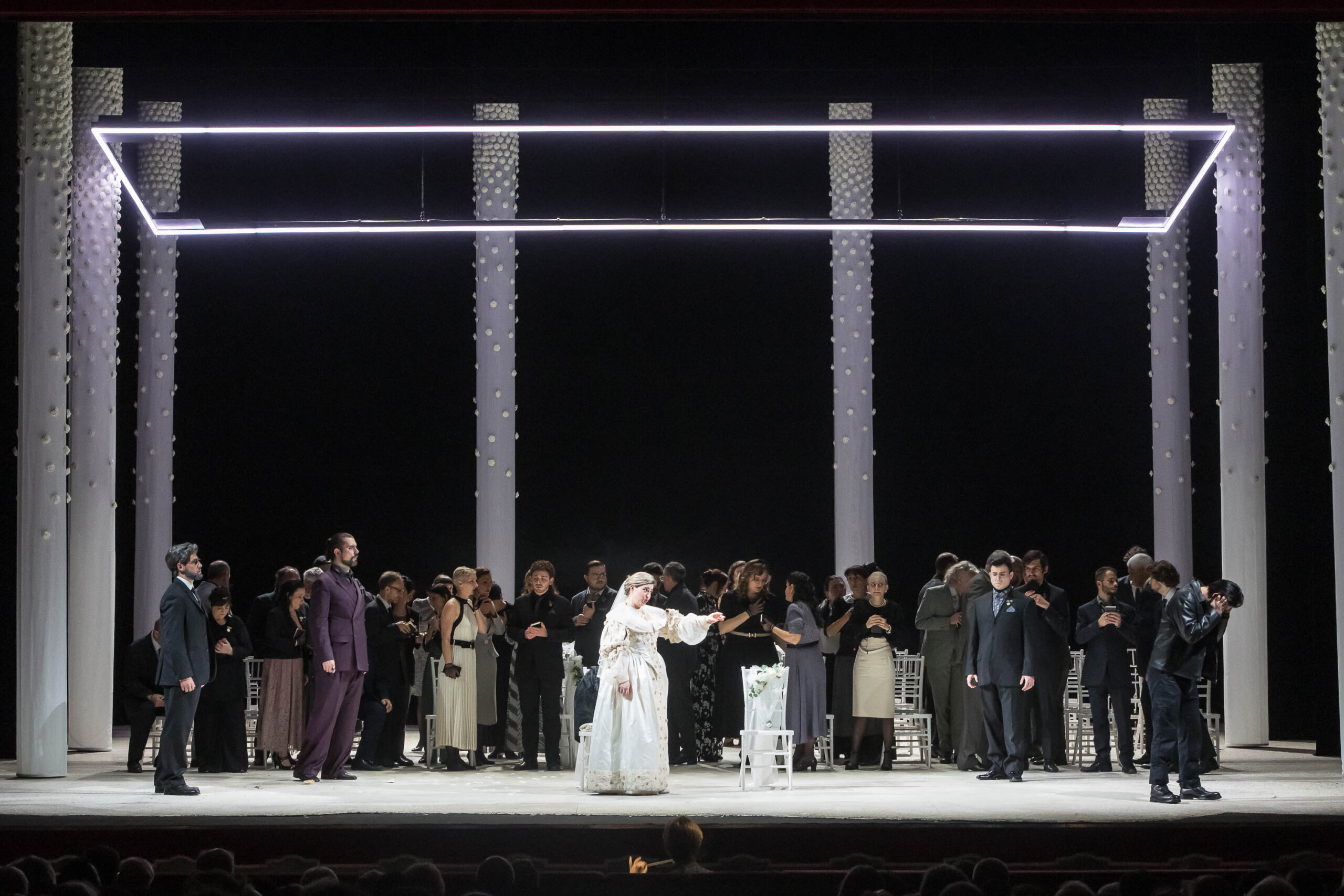 “A cosa serve celebrare il passato se non diventa un trampolino luminoso verso il progresso” si interroga il regista, sviluppando fra libretto e partitura “tutto il teatro che sobbolle nel cuore del Belcanto”.