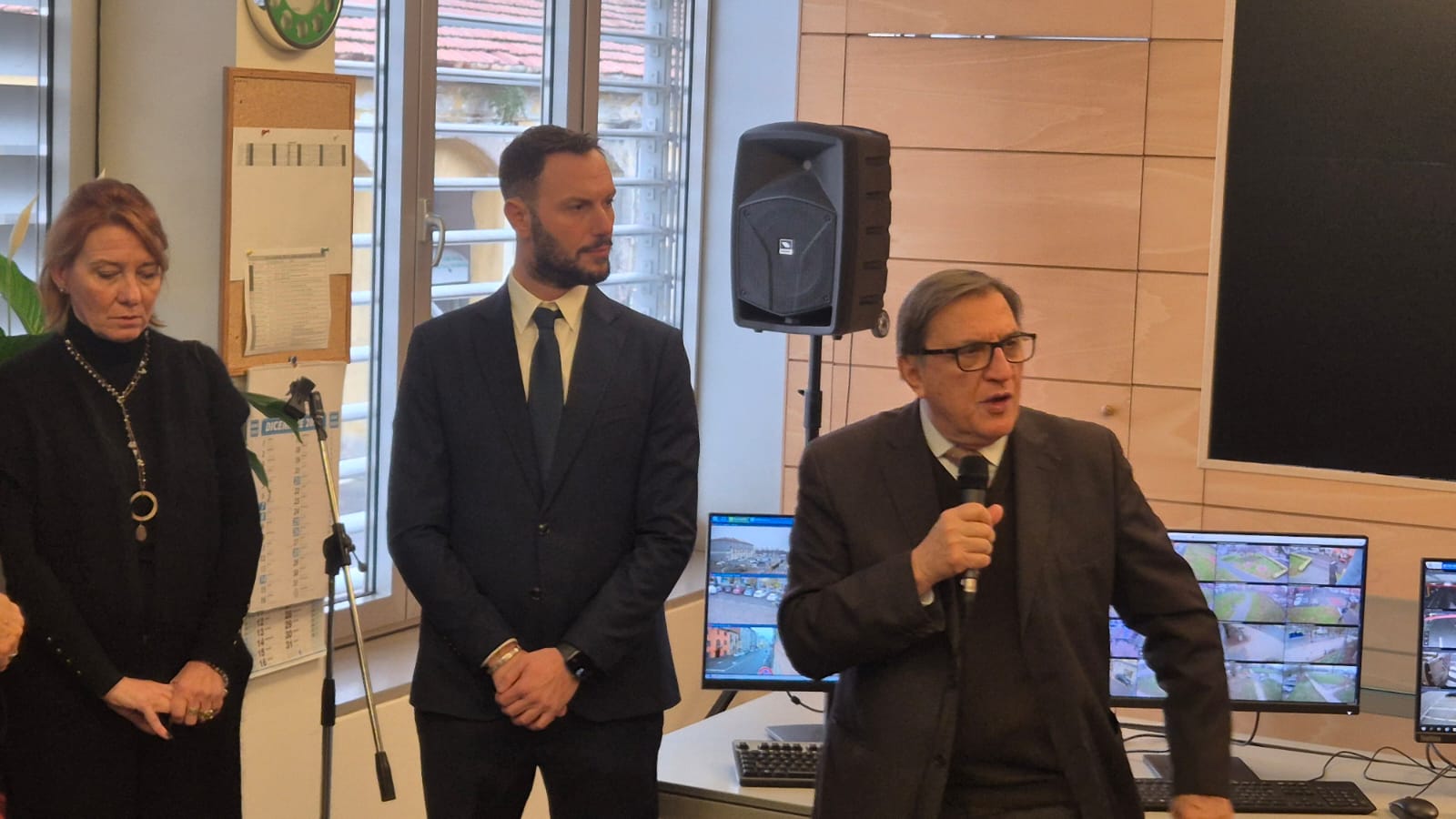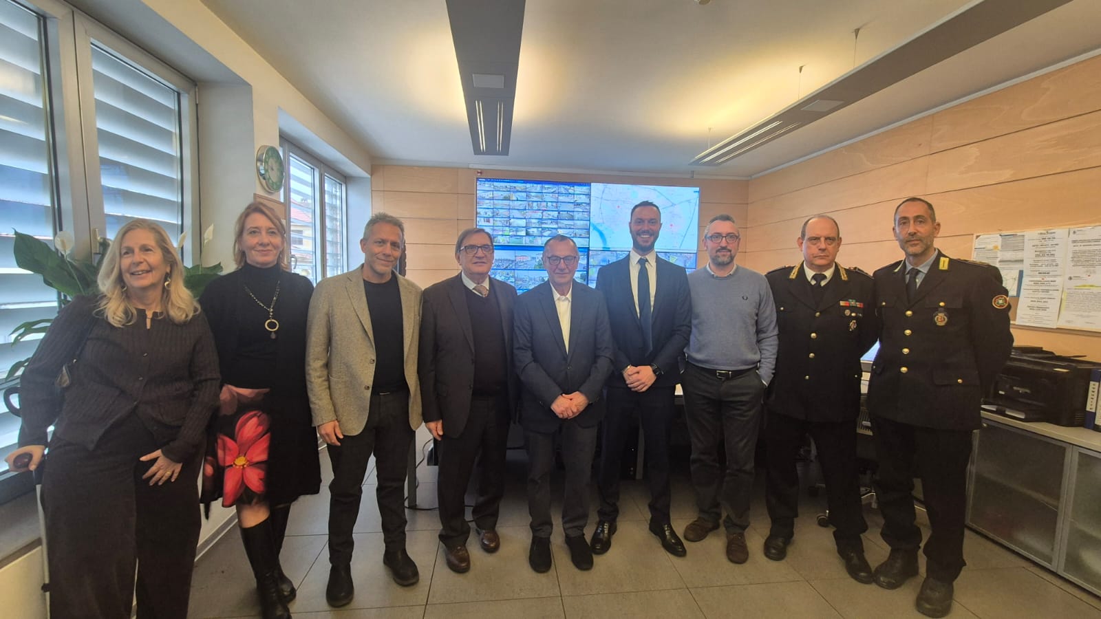 Non è mancato il commento entusiasta del comandante della Polizia Locale, Luca Iubini, che ha ringraziato tutti i rappresentanti istituzionali per la loro presenza, ricordando che “A marzo è prevista la consegna delle nuove telecamere” Infine il comandante ha illustrato tutte le potenzialità del nuovo videowall, che non solo riprende tutto quello che succede, ma geolocalizza in tempo reale anche la posizione delle pattuglie, ed è altresì in grado di verificare la situazione delle abitazioni cittadine e di chi vi risiede, in tempo reale.