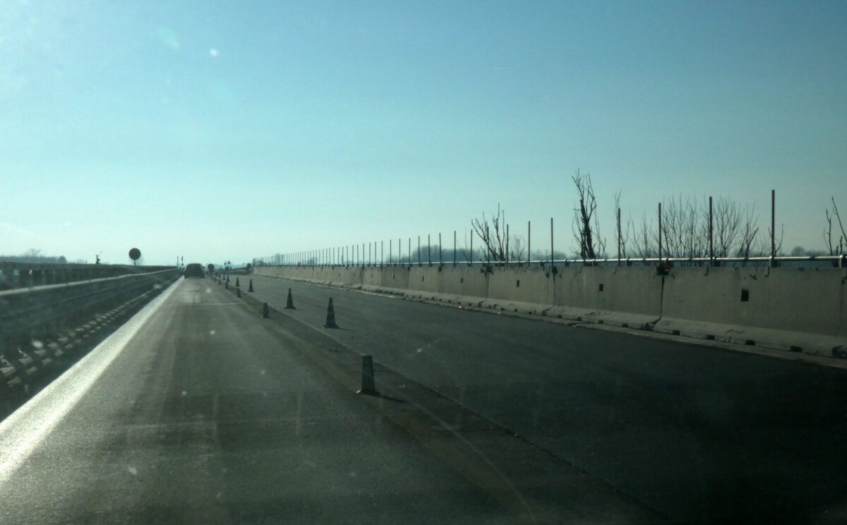 Terminati, da tempo, gli interventi nella corsia di marcia verso Cremona, ed ora pressoché ultimati quelli verso Parma, ed ora sono già ben avviate le operazioni di consolidamento anche nella corsia di marcia opposta, verso Parma, con l’installazione di barriere e guardrail attualmente in corso.