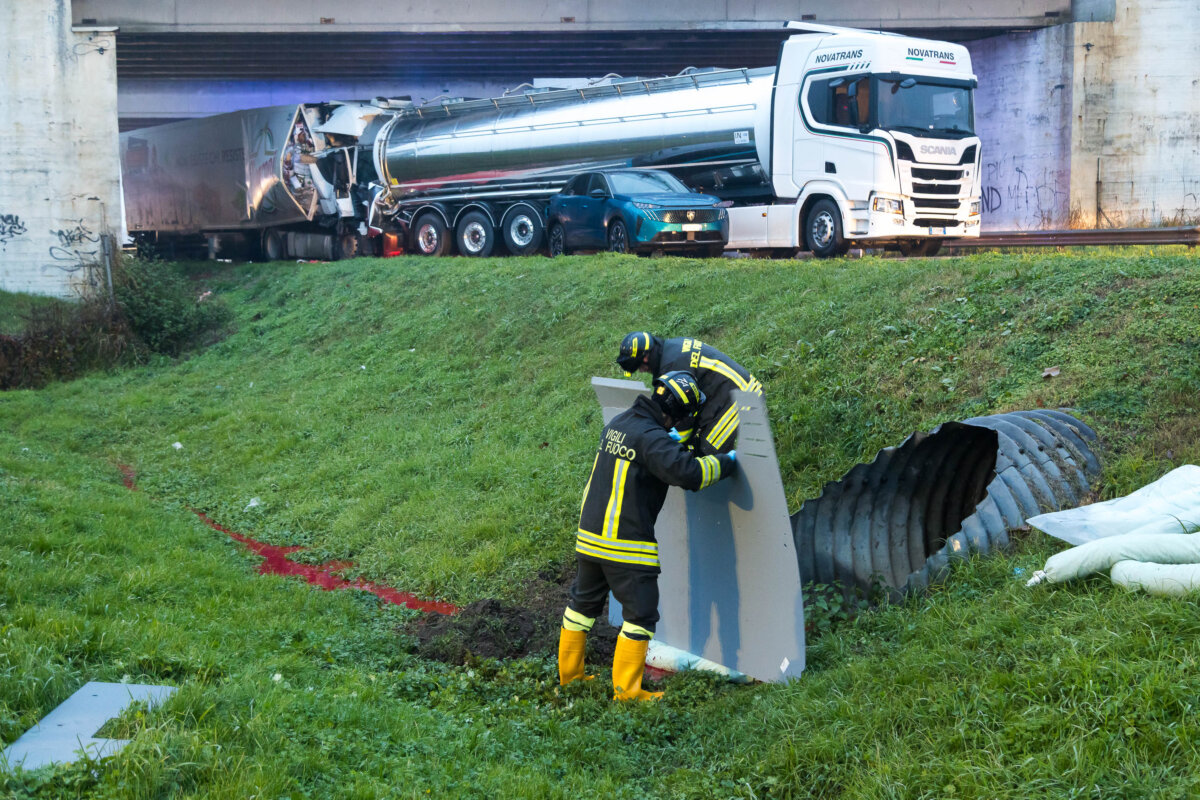 I Vigili del Fuoco sono prontamente intervenuti per arginare il più possibile la fuoriuscita, ma la pioggia abbondante ha fatto sì che il liquido scorresse velocemente dall’asfalto ai terreni erbosi. Toccherà all’Arpa stabilire l’entità dell’eventuale contaminazione.