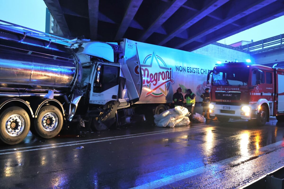 Un incidente che aveva fatto temere il peggio anche per il conducente del camion finito contro l’autocisterna, viste le condizioni della cabina di guida, oltre che per le occupanti di un’autovettura rimasta tangenzialmente coinvolta nello scontro.