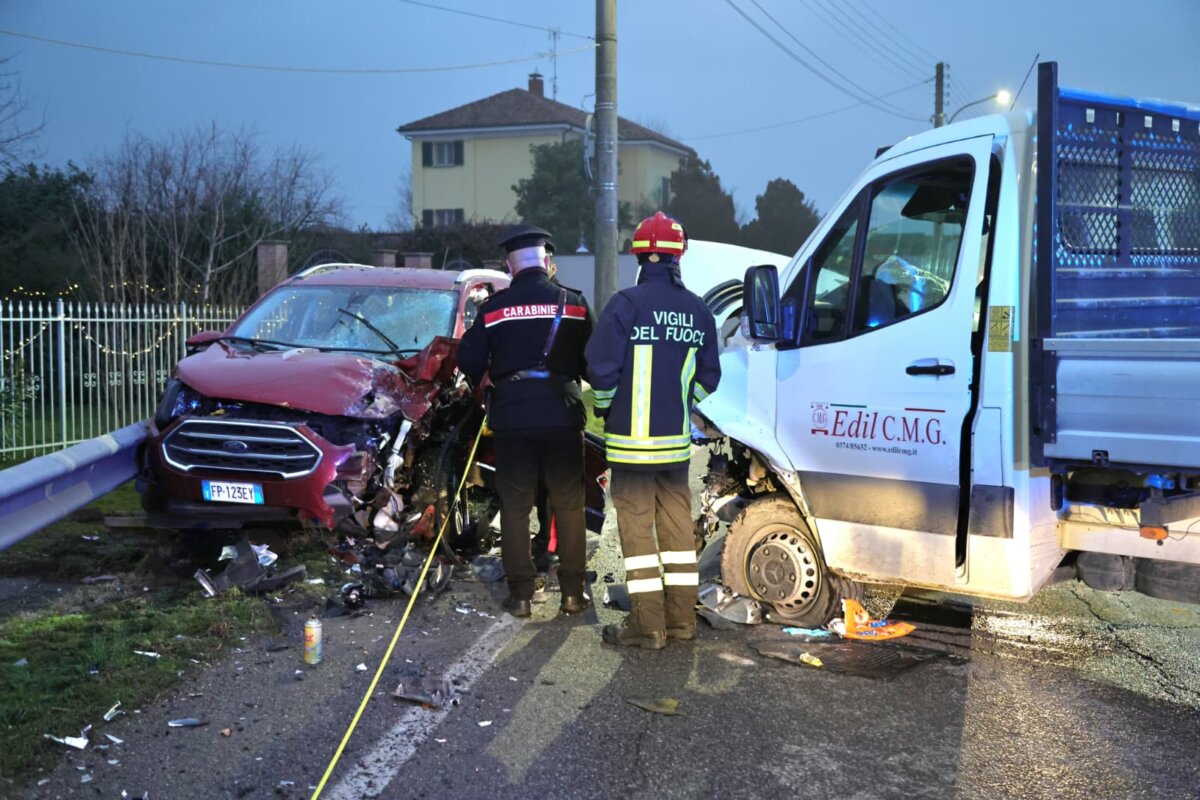 Pauroso incidente stradale a Genivolta, in via Roma, all’incrocio con via Stazione, dove un furgone e un’auto si sono scontrati quasi frontalmente. Erano circa le 15.45 quando il furgone, un Mercedes cassonato, condotto da un 49enne bergamasco, che viaggiava in direzione Soncino, ha improvvisamente invaso la corsia opposta, finendo contro alla vettura, che procedeva verso Genivolta.