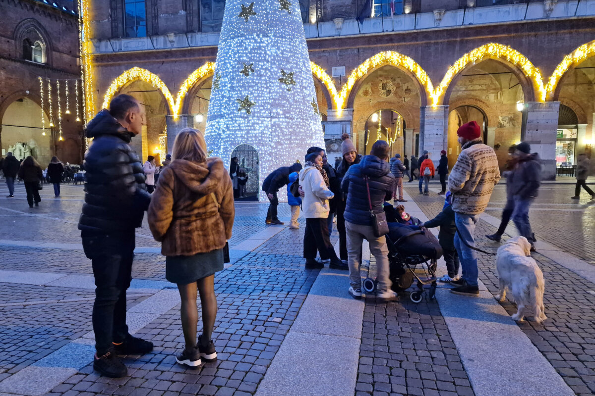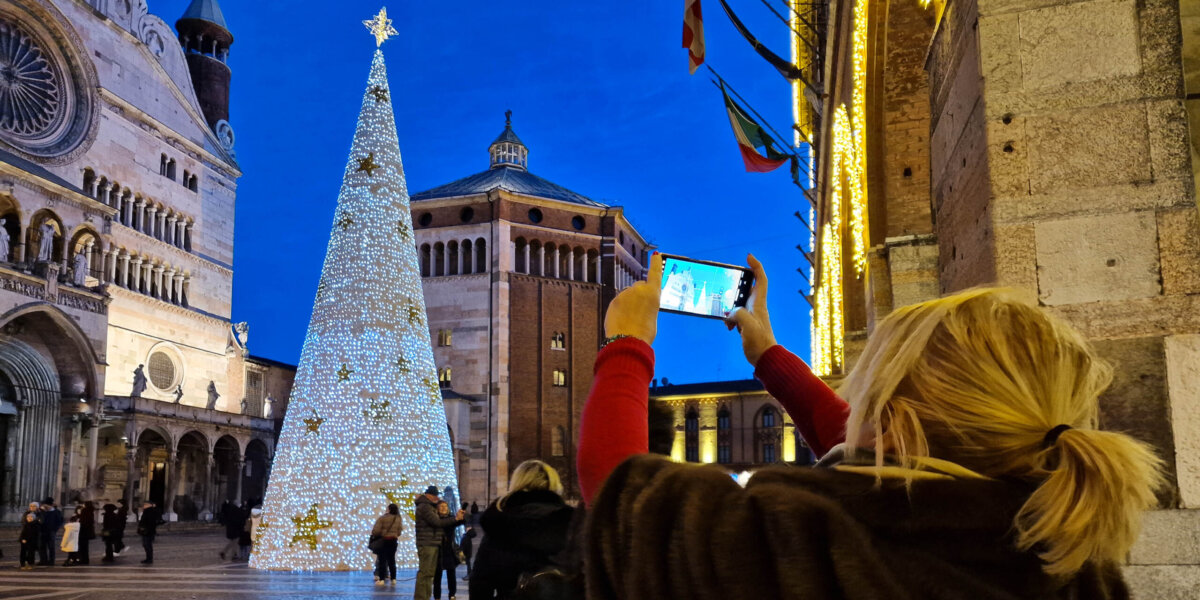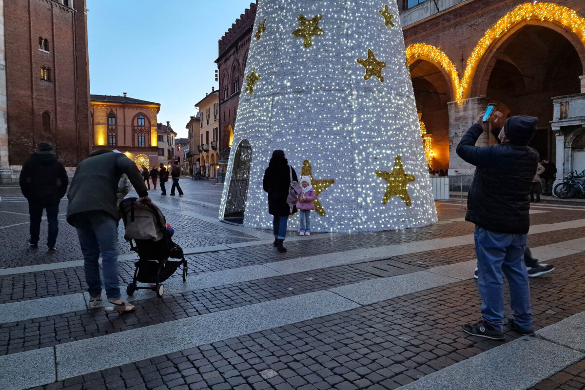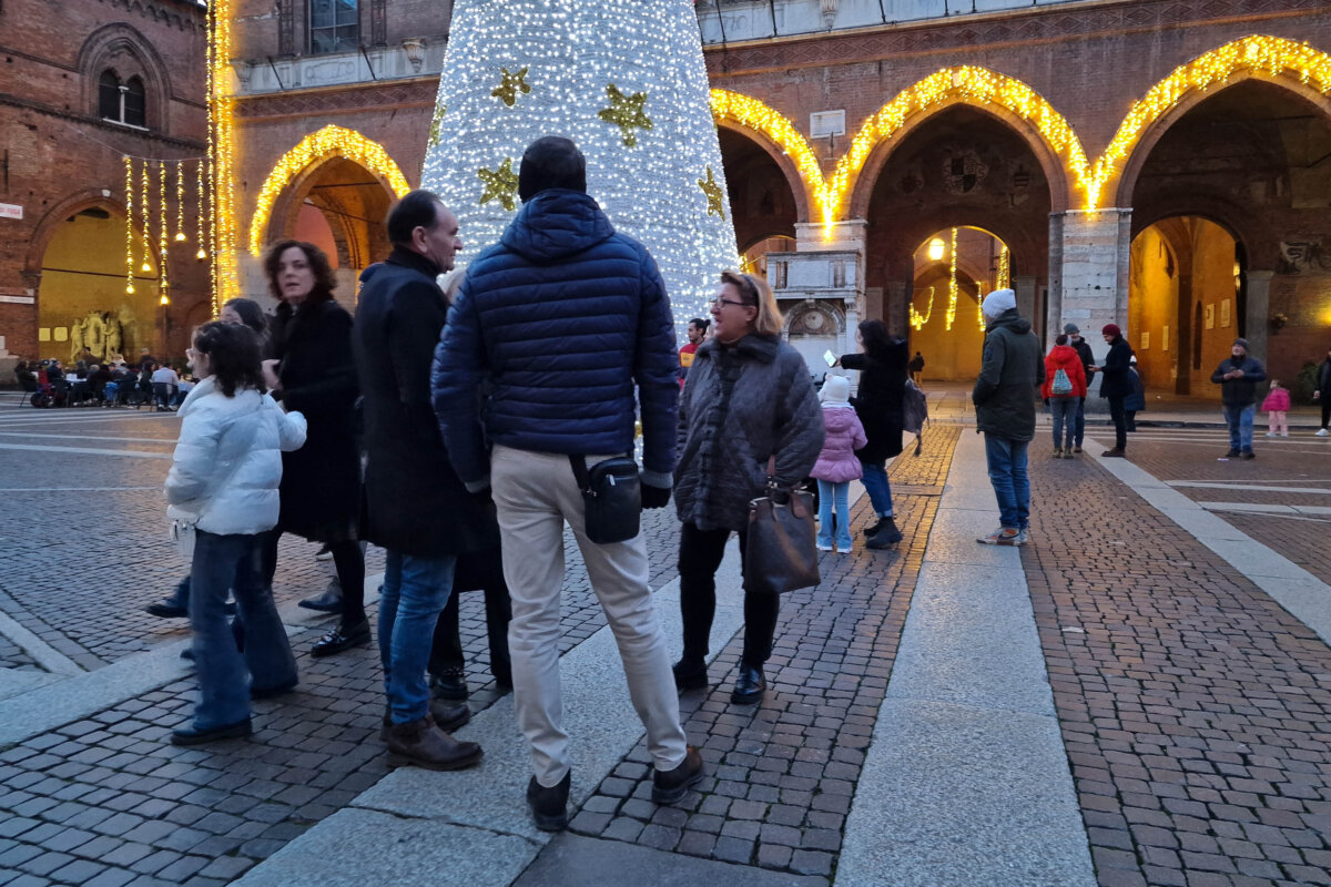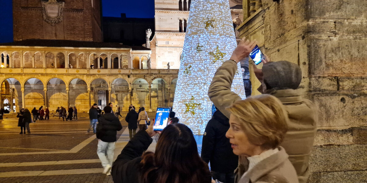 Tante foto naturalmente al Torrazzo che ha richiamato i presenti con il naso all’insù, così come all’albero di Natale luminoso sotto cui si sono scattate tante istantanee ricordo.