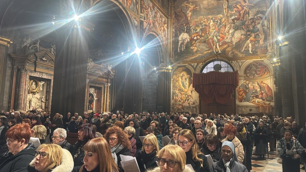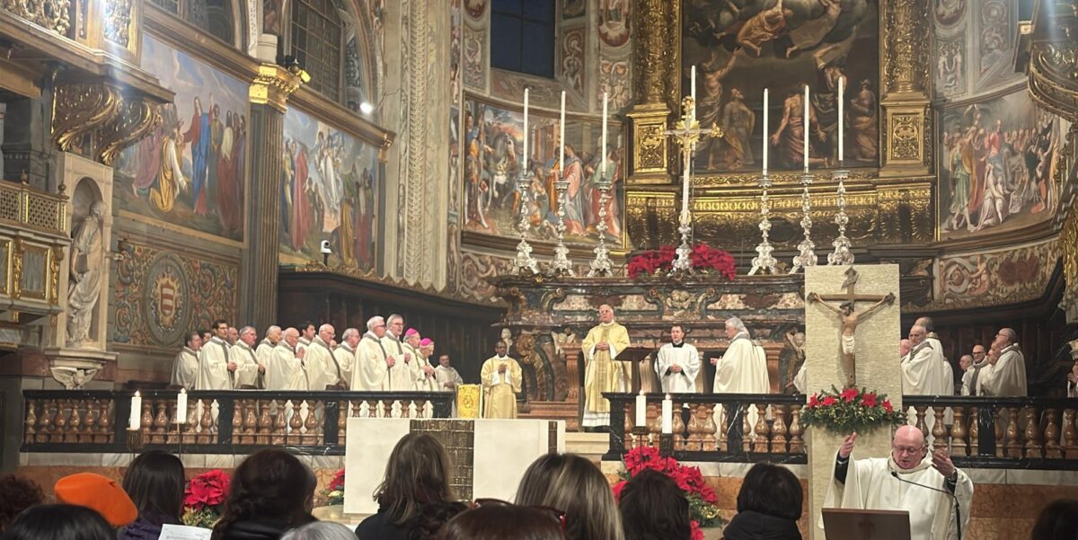 Per l’occasione è stato posto in presbiterio, come nei giorni di apertura del Giubileo, il Crocifisso di S. Omobono, scelto in diocesi come segno del Giubileo. L’antico crocifisso romanico davanti al quale, secondo la tradizione, il 13 novembre 1197 in preghiera adorante prostrato a terra morì il patrono Omobono Tucenghi, solitamente custodito nella chiesa di S. Omobono, per l’intero Anno Santo è stato eccezionalmente trasportato in Duomo e collocato nei pressi della Cappella della Confessioni, dove è stato ricavato uno spazio per la preghiera personale. Quasi 300 coristi, appartenenti a una ventina di scholae cantorum delle parrocchie delle diverse parti della diocesi hanno animato con il canto la liturgia in occasione del Giubileo diocesano delle Corali che si è vissuto proprio domenica 28.