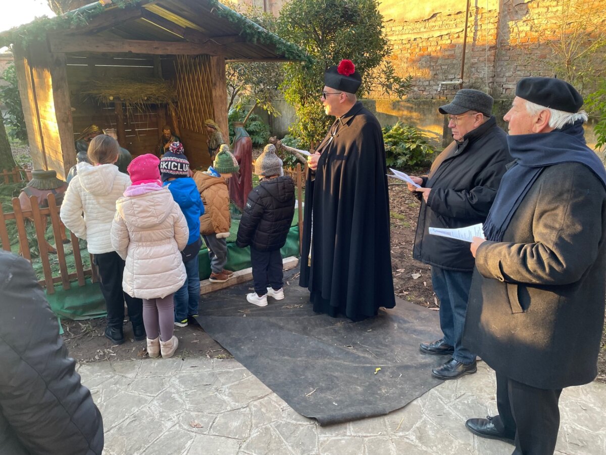 Alle 16 si è svolto un bel momento di preghiera, dedicato soprattutto ai bambini, davanti alla capanna allestita nel giardino della mostra. Il parroco, don Mario Bardelli, ha voluto sottolineare la bellezza dell’immagine di Gesù bambino e l’importanza del gesto di adorazione che hanno compiuto i magi, invitando tutti i presenti a fare altrettanto. Il momento di preghiera si è concluso con il bacio della statua di Gesù bambino e con la benedizione dei presenti e delle statuine realizzate dai volontari del gruppo “Amici del presepio” che sono state poi distribuite ai bambini.