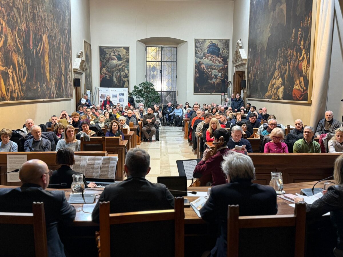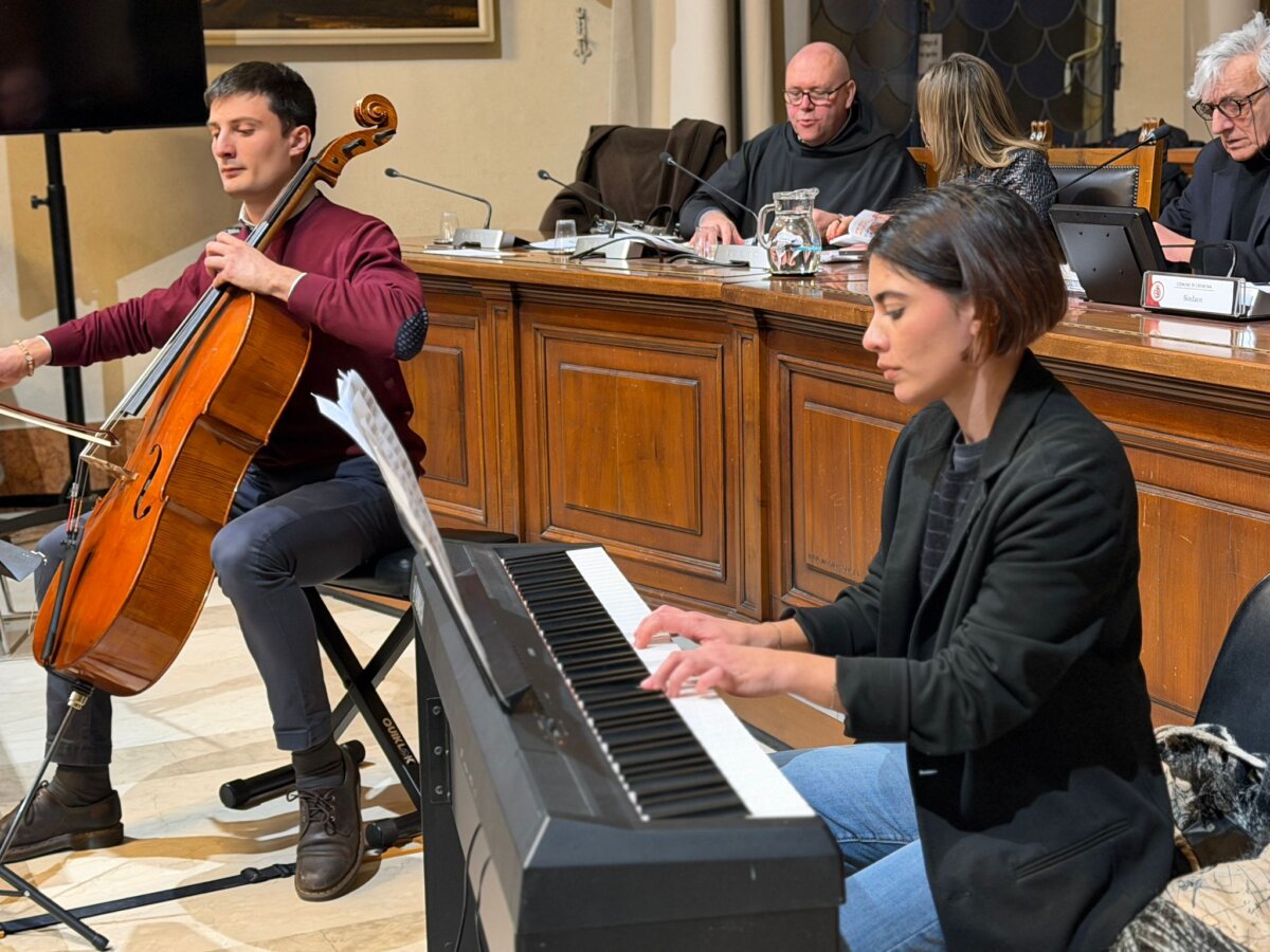 Alla presentazione sono intervenuti fra Marco Moroni, Custode del Sacro Convento di Assisi e Gabriella Chiellino, Founder Ceo di Eambiente (Mestre), che hanno offerto la loro testimonianza di legame spirituale con san Francesco. Gli interventi sono stati intervallati da brani musicali eseguiti da Benedetta Broegg alla tastiera e da Filippo Longhi al violoncello.