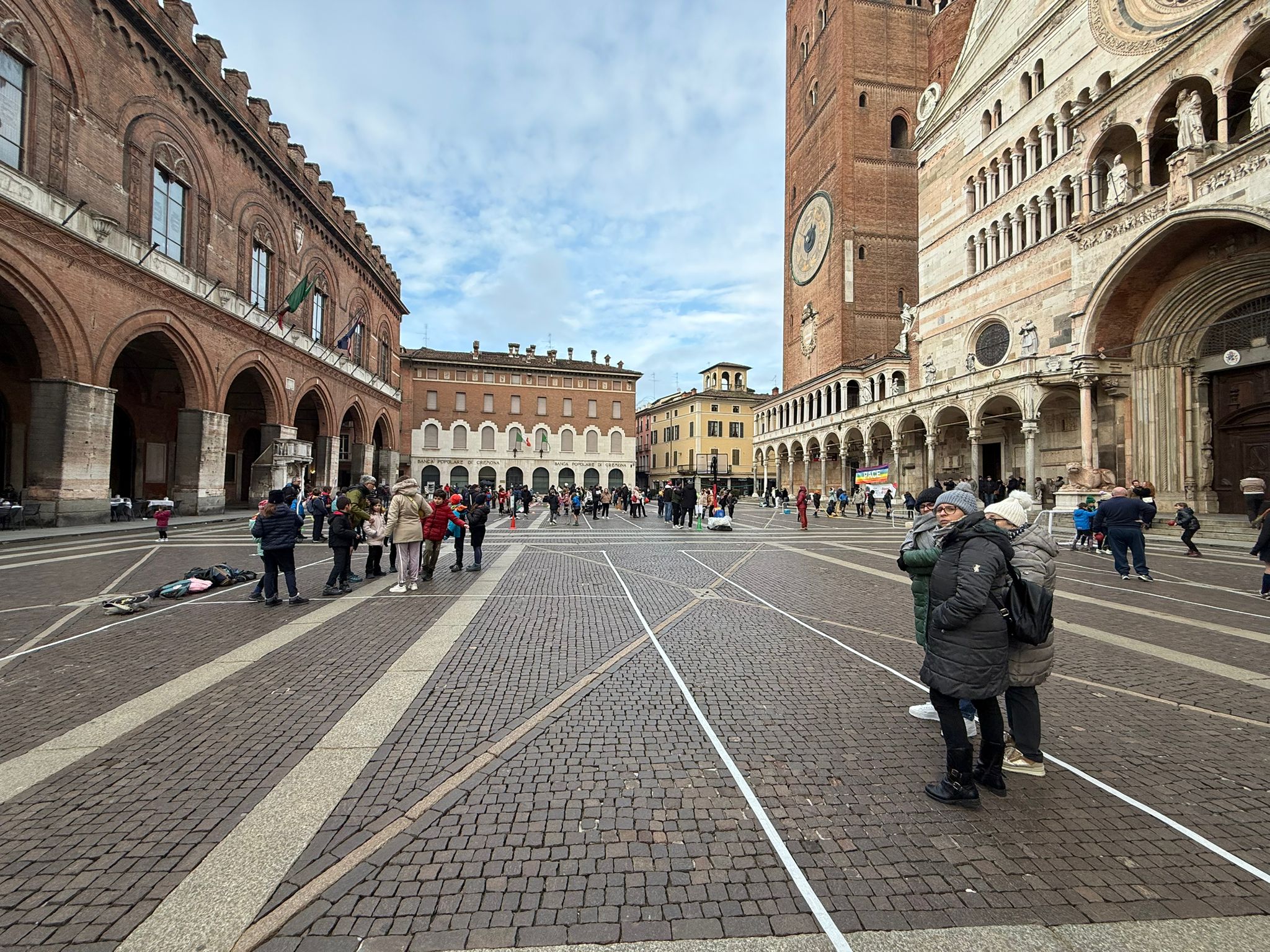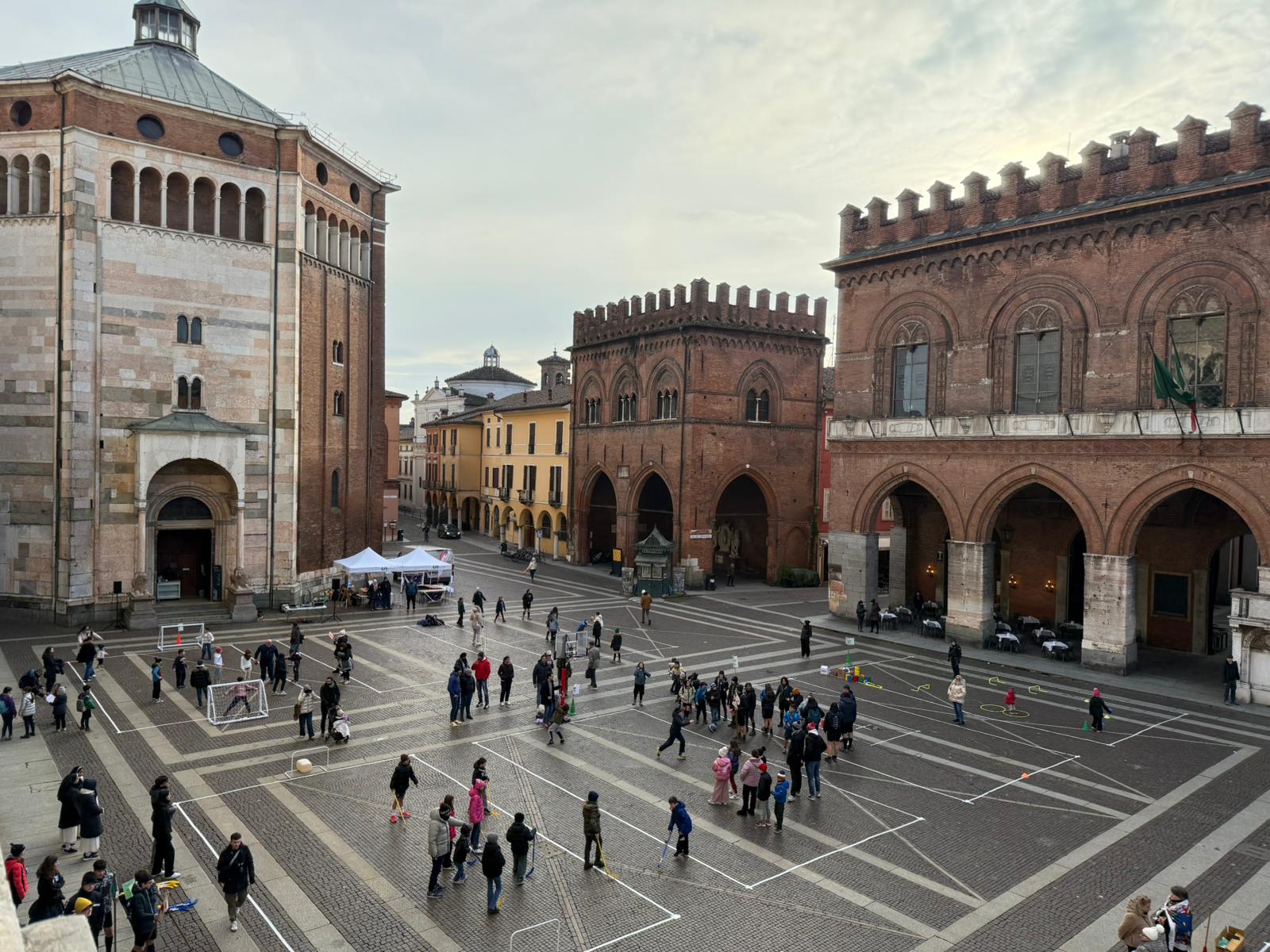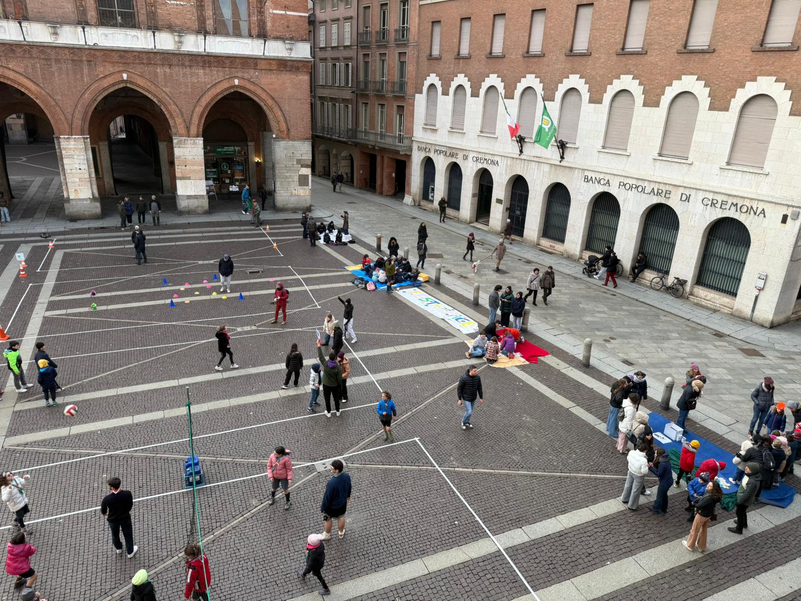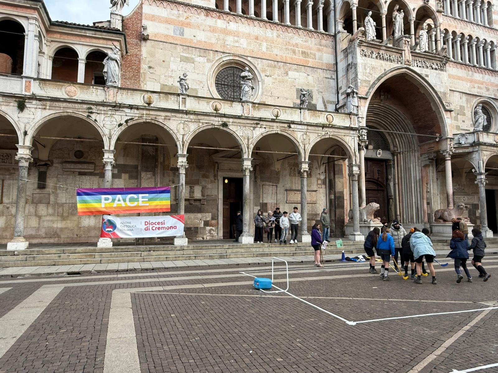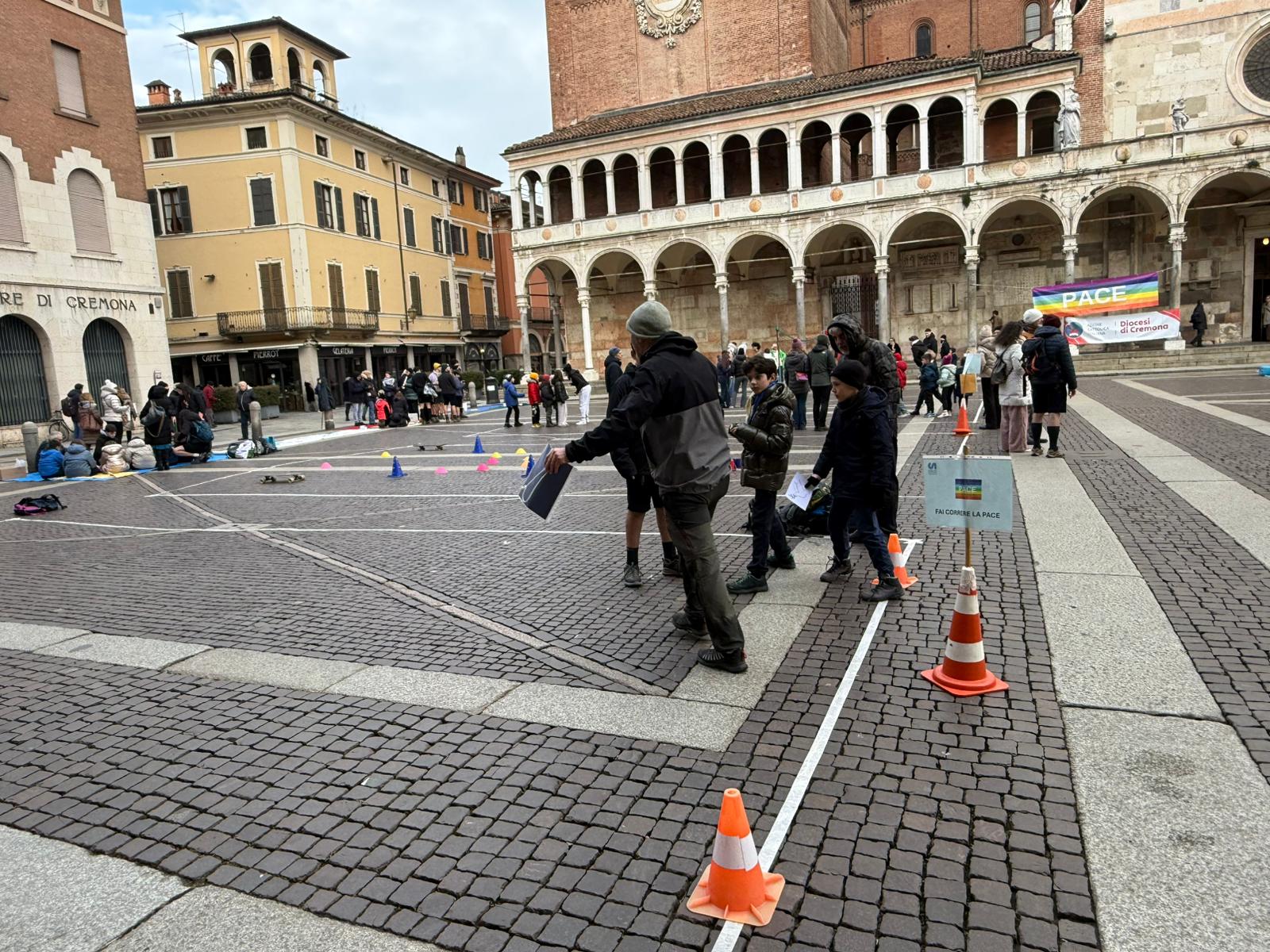 Piazza del Comune a Cremona si è trasformata in un grande laboratorio di gioco e riflessione, grazie all’iniziativa promossa dall’Azione Cattolica Cremonese diocesi di Cremona, Federazione oratori cremonesi e Csi Cremona. L’evento, dal titolo Terra in Pace, ha coinvolto bambini e ragazzi di diverse età in un pomeriggio di attività ludiche e formative, con l’obiettivo di promuovere la riflessione e la consapevolezza sui temi della pace e del rispetto per gli altri.