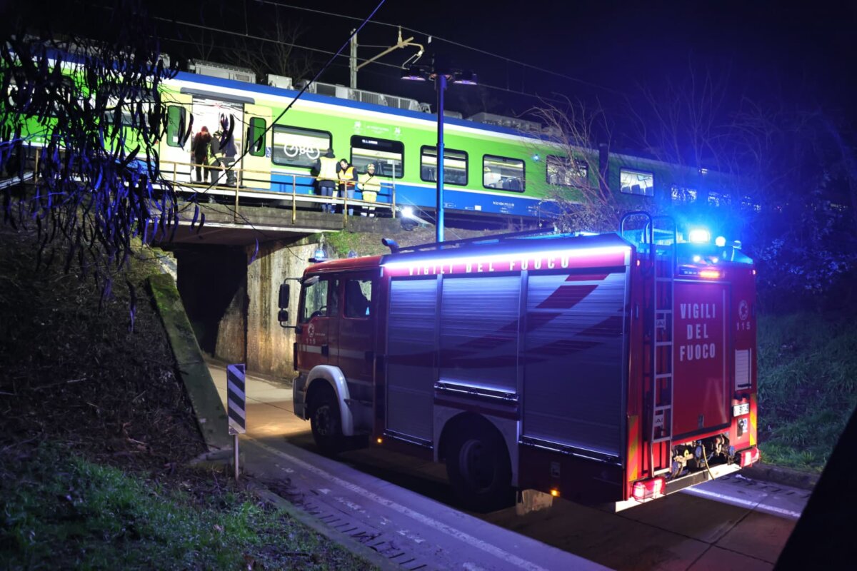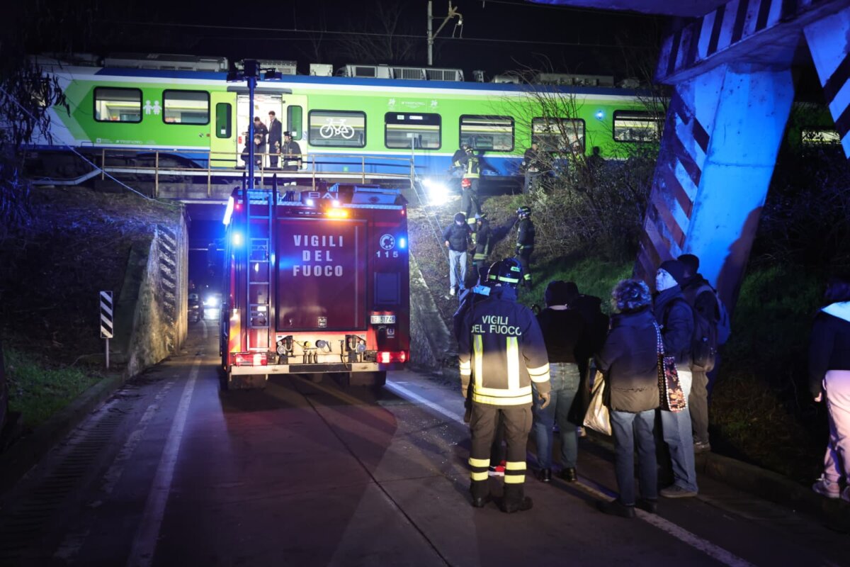 Il treno è fermo sul cavalcavia. I passeggeri sono stati fatti scendere e accompagnati nel centro abitato.