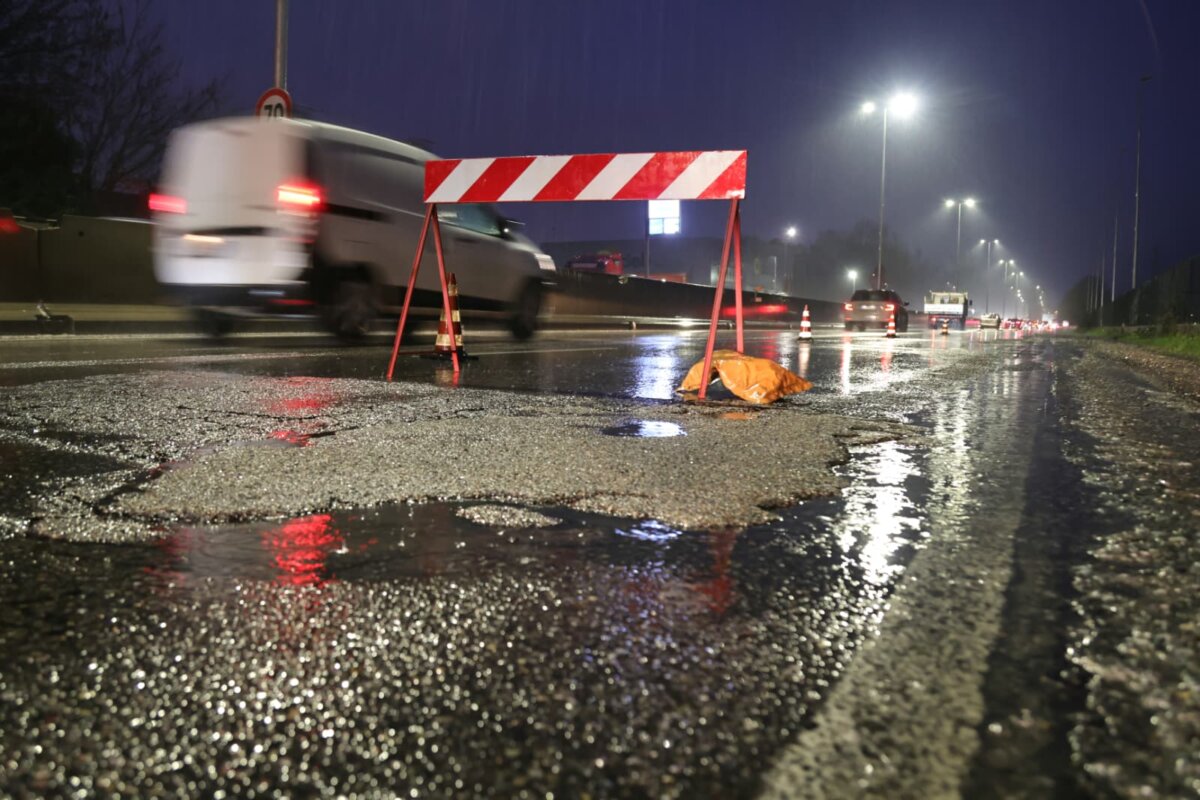 Pioggia e strade groviera: chiusa una corsia di via Zaist