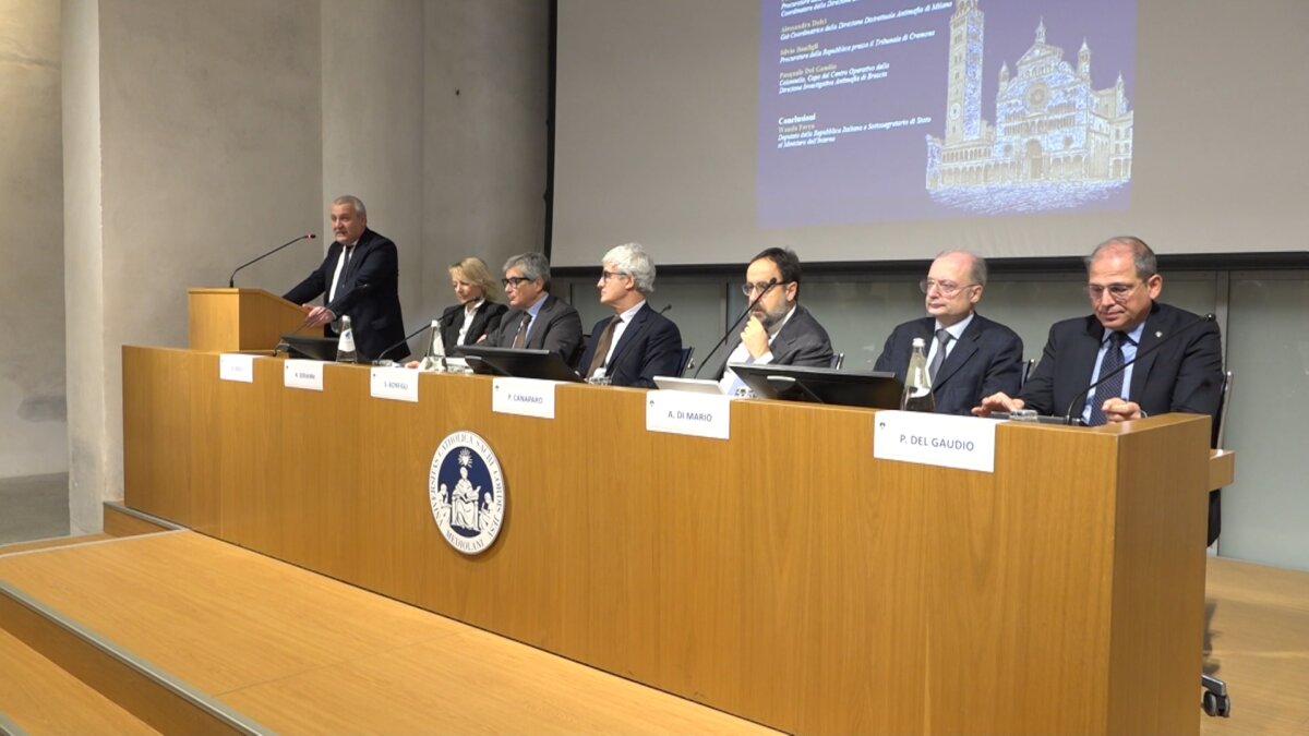Magistrati della Direzione distrettuale antimafia, ufficiali dei carabinieri, Prefetti e il sottosegretario all’Interno Wanda Ferro riuniti questa mattina alla Cattolica di Cremona per un convegno dedicato al perfezionamento delle misure di contrasto alle infiltrazioni della mafia nel tessuto economico del territorio.