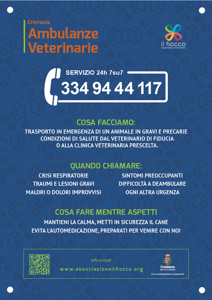 A quasi un anno dall’avvio del servizio delle Ambulanze Veterinarie Cremona, con circa 220 interventi coordinati dal centralino, una presenza operativa 24 ore su 24 e una risposta sempre più conosciuta e utilizzata dalla cittadinanza, è stato posto il primo cartello informativo nell’area cani di Porta Mosa, pensato per rendere immediatamente accessibile il numero di pronto intervento anche quando si è fuori casa.
