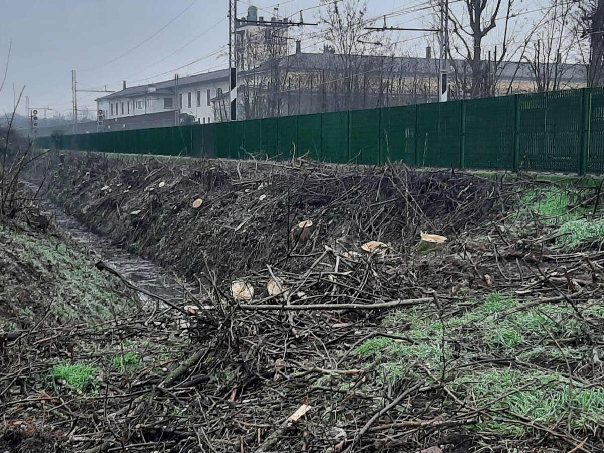 Tra le altre segnalazioni, anche gli abbattimenti radicali fatti sempre nella fascia di rispetto della ferrovia sull’altro lato della stessa, al confine con il campo di calcio del seminario di via Milano.