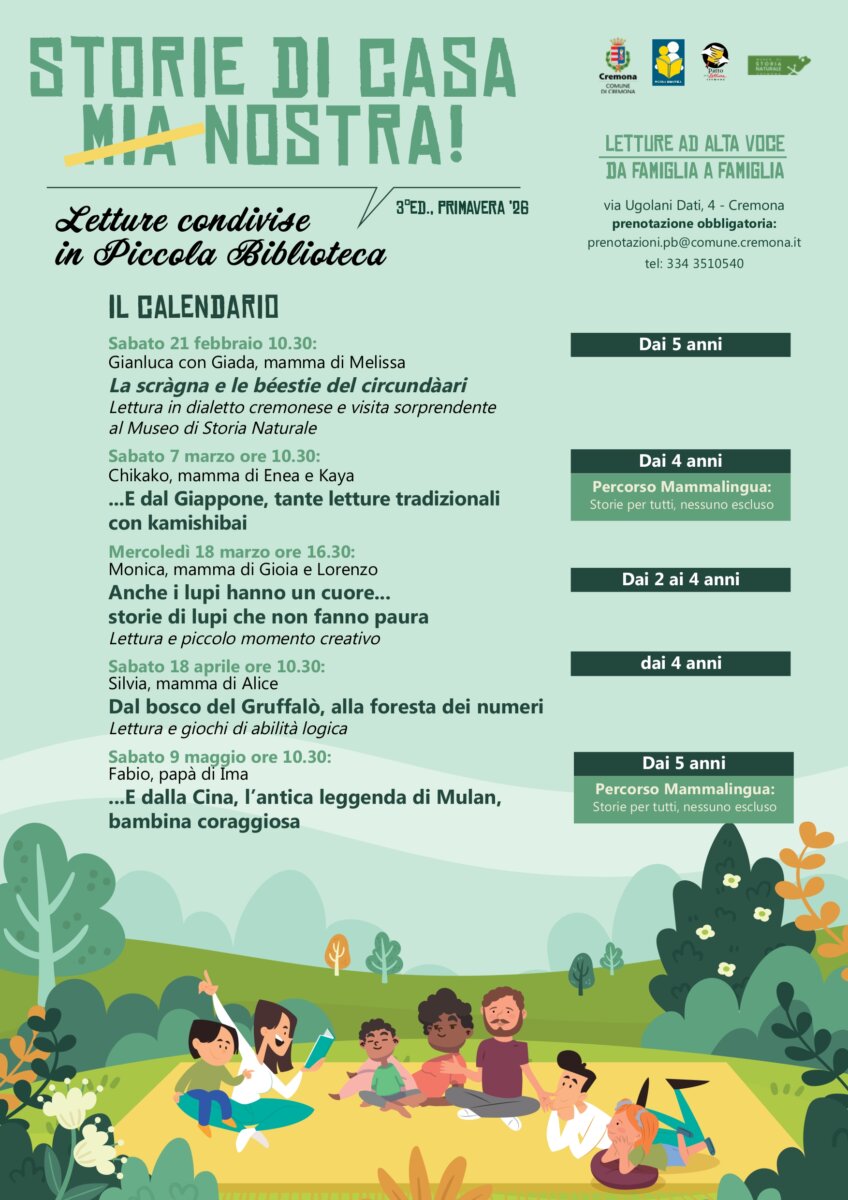 “Questa bella iniziativa – sottolinea l’assessore alla Cultura Rodolfo Bona – si colloca nel solco di quanto realizzato con successo ormai da tre anni e in piena armonia con gli obiettivi di sviluppo della lettura e di condivisione dell’esperienza narrativa sostenuti con convinzione dall’amministrazione comunale. Il progetto ora si arricchisce con nuovi protagonisti e consolida il legame con la Piccola Biblioteca, ospitata negli spazi del Museo di Storia Naturale, che si distingue per il particolare apprezzamento delle famiglie cremonesi e dei lettori più piccoli. Per tali motivi esprimo la mia soddisfazione e il ringraziamento ai promotori, ai genitori e ai bambini che parteciperanno agli incontri e a chi ha collaborato alla realizzazione del progetto”.