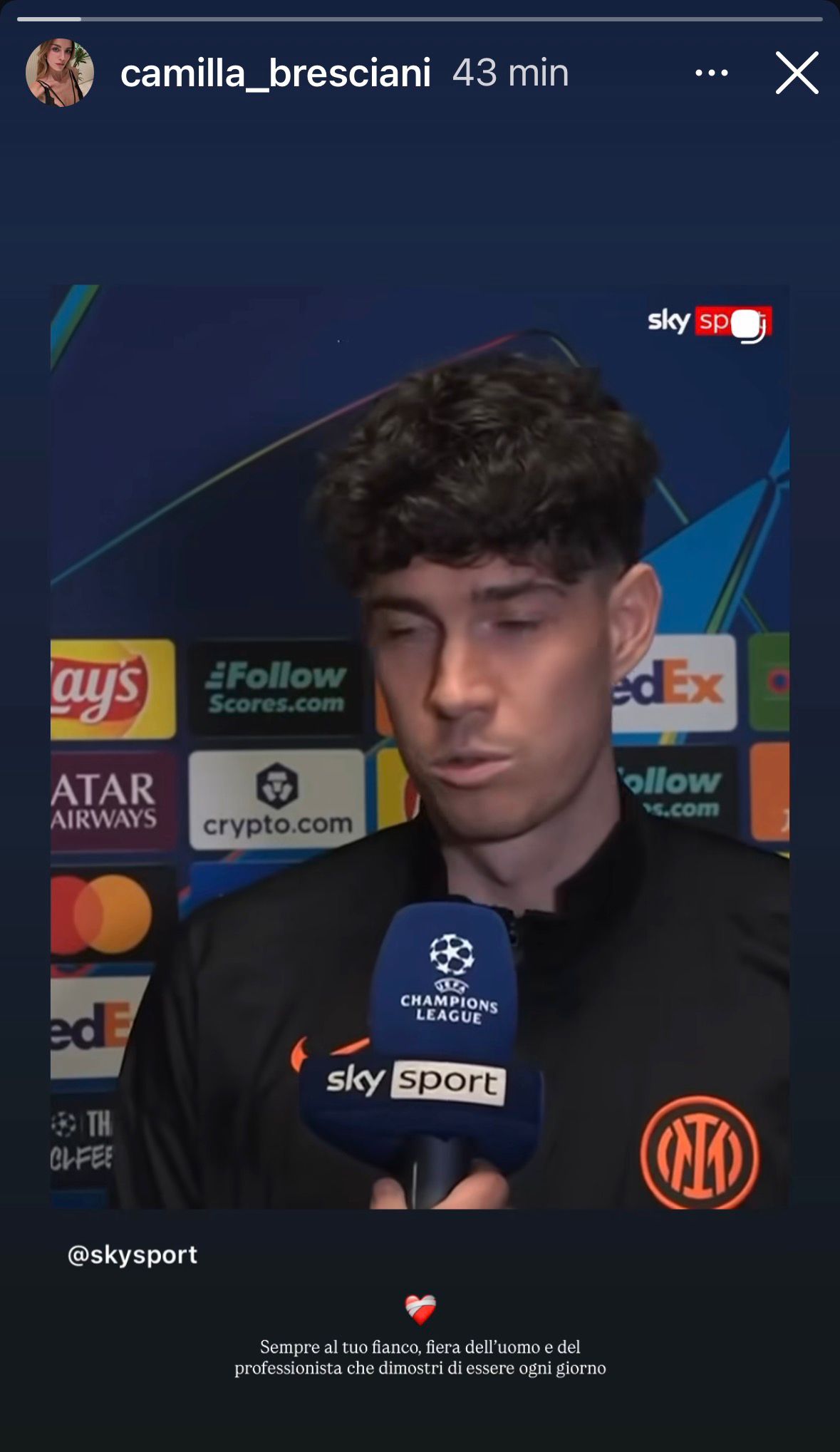 Bastoni, la moglie Camilla su Instagram: "Fiera dell'uomo che sei ogni giorno"