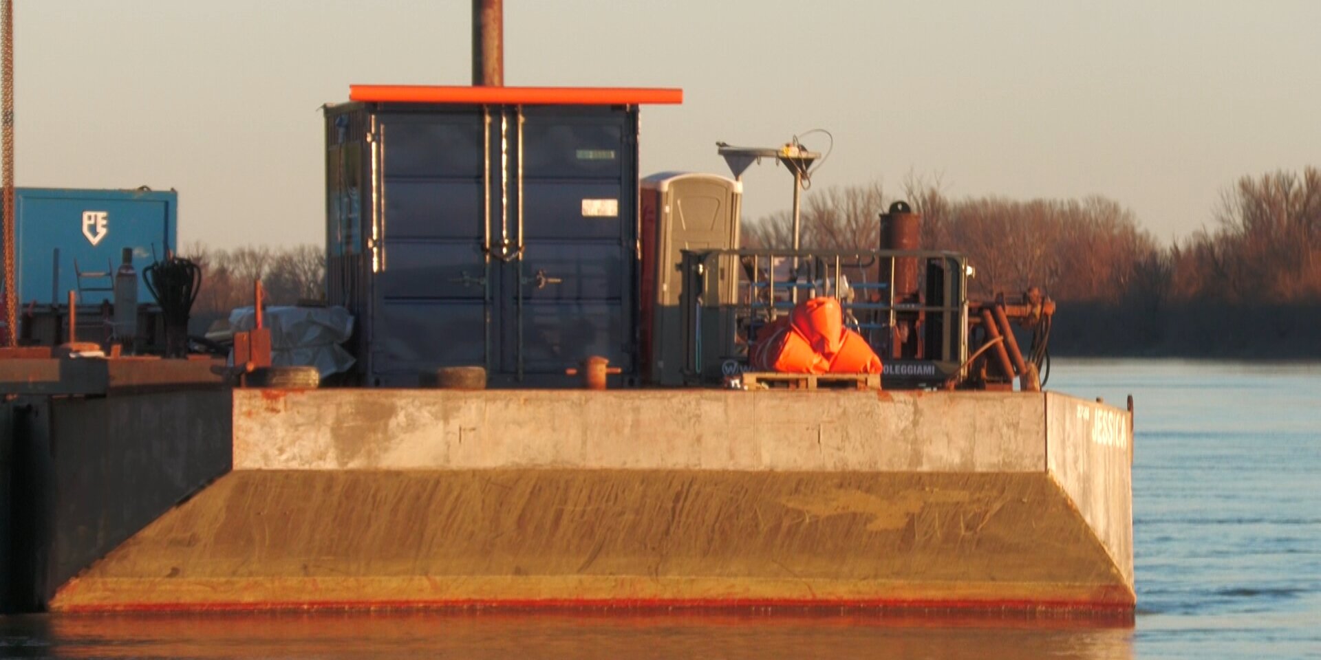 Dopo gli interventi sulla sommità del ponte, in entrambe le corsie di marcia, è arrivato ed ha attraccato a Isola Pescaroli il pontone, il grande “zatterone” che serve a trasportare i mezzi d’opera (ruspe, gru, escavatori) durante le operazioni sulle pile in alveo del ponte per le quali si farà ricorso anche all’intervento di esperti sommozzatori.