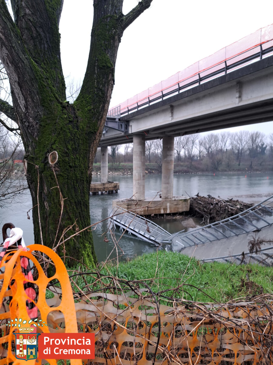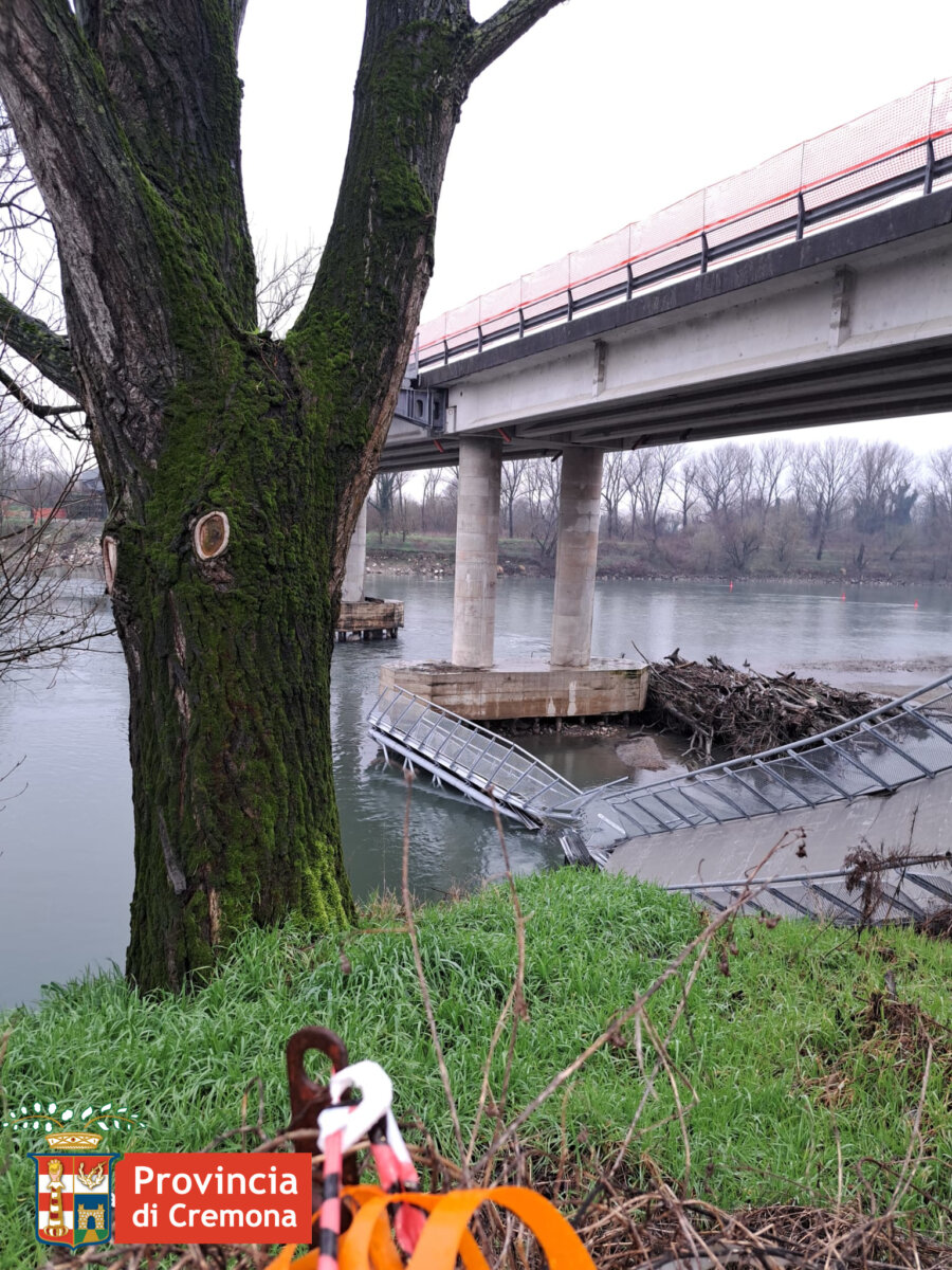 Immediato l’intervento dei tecnici della Provincia di Cremona, insieme ai Carabinieri e ai Vigili del Fuoco, che hanno verificato la situazione di una struttura ormai completamente compromessa. Si tratta del terzo crollo nel giro di sei giorni. Ancora non chiare le cause, per le quali sono in corso le opportune indagini. La cosa certa è che la struttura ha iniziato a cedere dopo la posa di un materiale simile al calcestruzzo lungo la passerella.