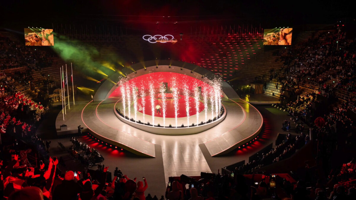 Momenti di celebrazione sulle note dei classici italiani, l’omaggio ai volontari e la danza di Roberto Bolle che precede il passaggio di consegne alle Alpi Francesi, sede dei Giochi 2030.