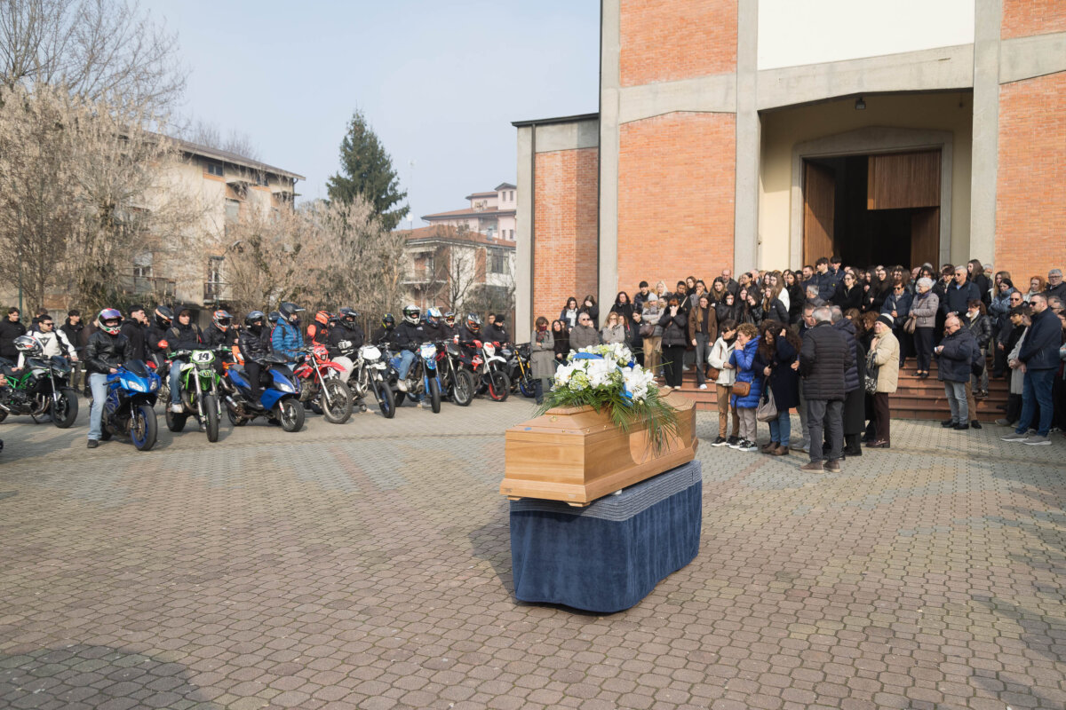 Fuori, sul piazzale, diverse moto di compagni di classe, amici e coetanei che, come lui, condividevano la passione per le due ruote. Dentro, una chiesa gremita, di ragazzi e adulti, conoscenti e sconosciuti.