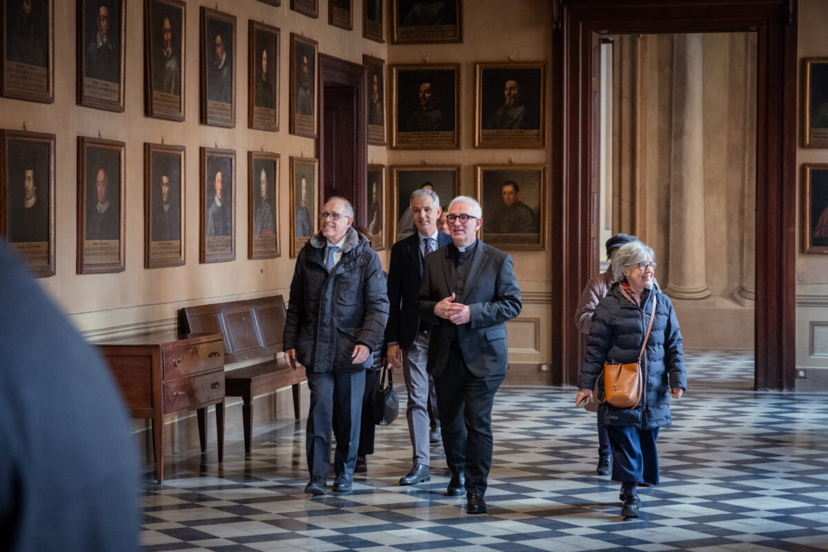 Proprio monsignor Gaiardi ha guidato i presenti in un percorso che dal monumentale scalone ha condotto alla Galleria con i ritratti dei vescovi, passando per le aule oggi destinate alla didattica del Museo diocesano fino alla sala ovale, fulcro architettonico del complesso, che dà accesso alla cappella di Santo Stefano, alla sala Bolognini e agli ambienti della residenza episcopale.