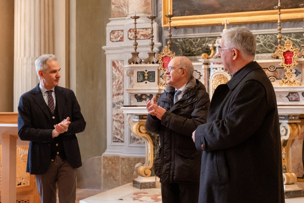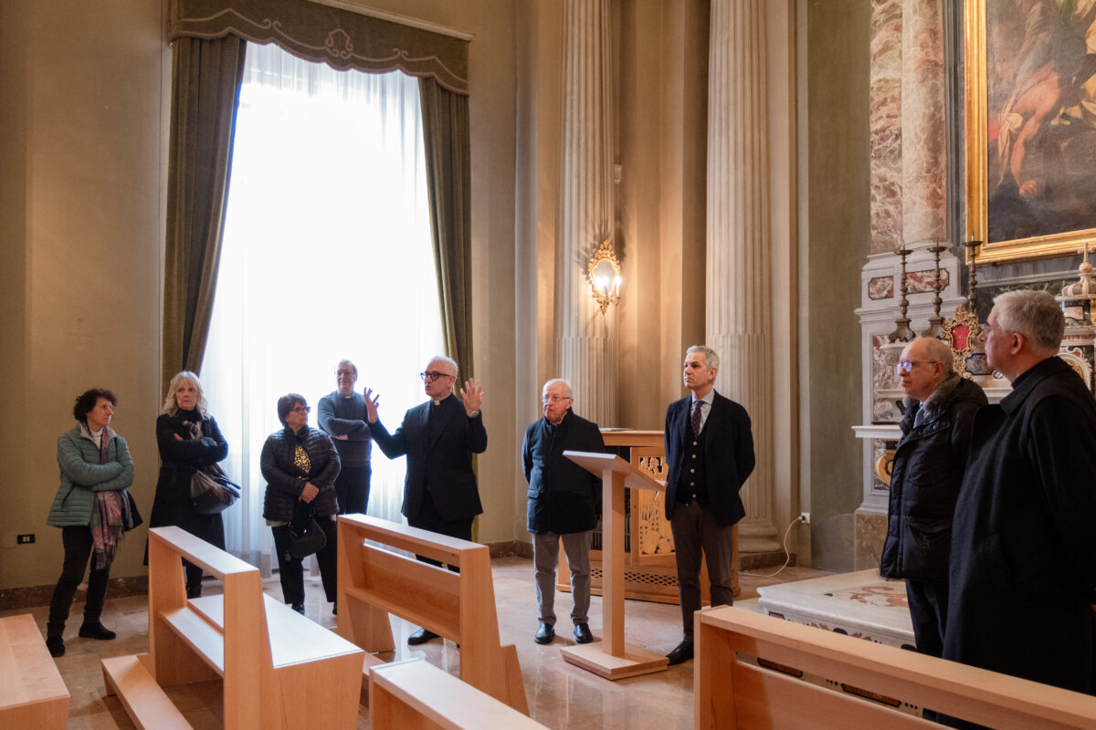Nella cappella palatina il vescovo ha quindi impartito la benedizione, richiamando il valore simbolico e pastorale di questa apertura. L’opera di riqualificazione si colloca in una visione progettuale iniziata nel 2020, presentata subito dopo nella suggestiva cornice della sala Bolognini, situata sopra il voltone che da via Platina dà accesso a piazza Sant’Antonio Maria Zaccaria, impreziosita dal celebre tavola del Platina.