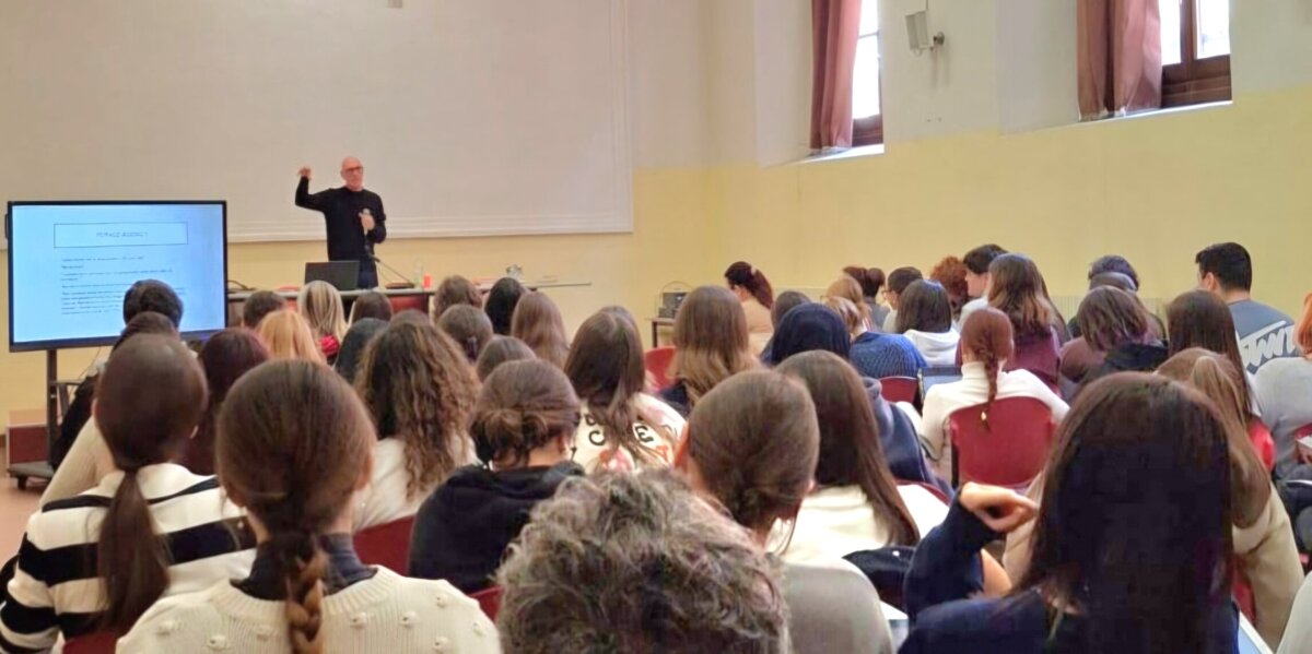 Dopo i saluti della dirigente scolastica Maria Grazia Nolli, il professor Saglia ha preso la parola per una lezione interamente in Inglese che ha catturato l’attenzione di studenti e docenti per oltre un’ora.