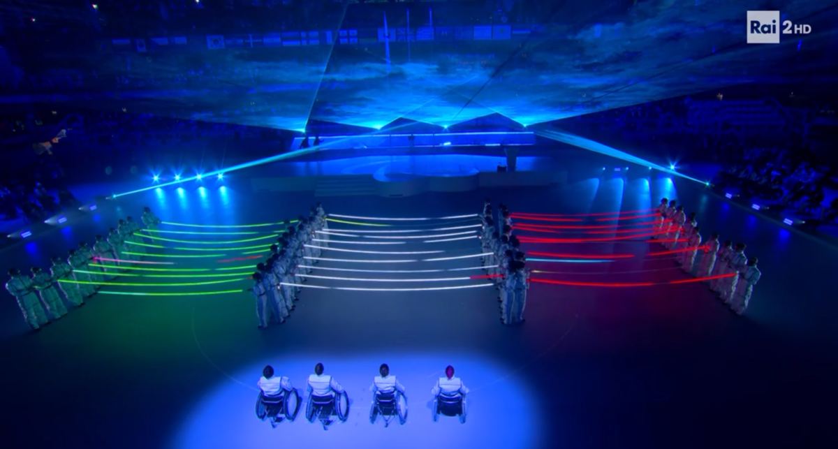 La “Bellezza della Diversità” è stato il tema della serata, scandita dalla sfilata degli atleti, dall’inno d’Italia cantato da Arisa, dall’ingresso del Tricolore portato da sei atleti paralimpici, tra cui due tra i più rappresentativi campioni dello sport italiano: Simone Barlaam e Martina Caironi.