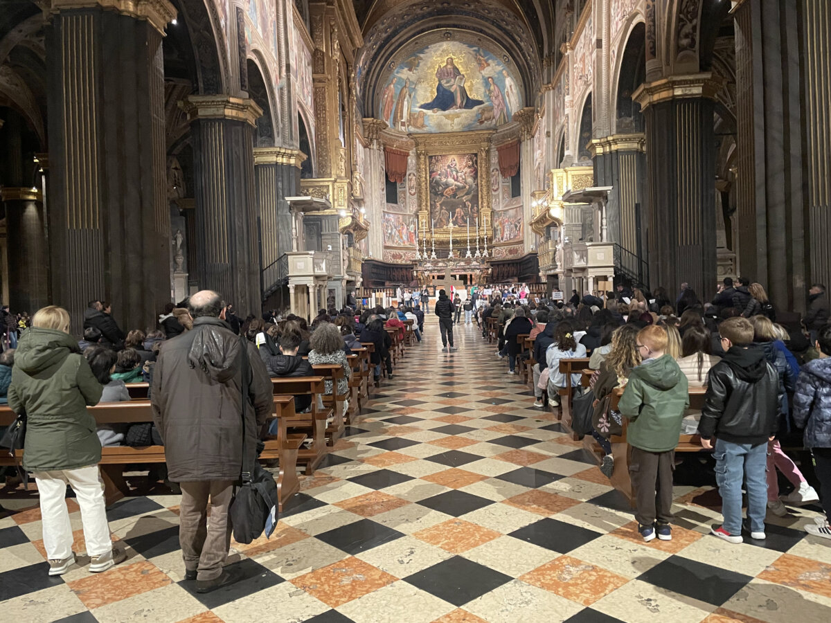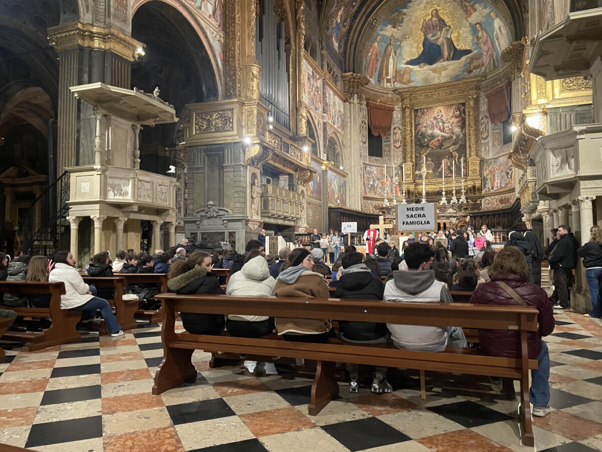 Si è svolta questa sera, come da tradizione, la Via Crucis delle scuole paritarie di Cremona, in chiusura dei Quaresimali in preparazione alla Pasqua. Protagonisti gli alunni delle scuole cattoliche della città, in particolare gli alunni delle primarie e delle secondarie di primo grado, che hanno animato le diverse stazioni della Via Crucis con l’accompagnamento musicale del coro della Sacra famiglia diretto da Giovanni Grandi. Un appuntamento preparato da bambini e ragazzi insieme ai propri insegnanti, vissuto insieme alle famiglie. Presenti le scuole della Beata Vergine e della cooperativa Cittaniva oltre alla Sacra Famigia.