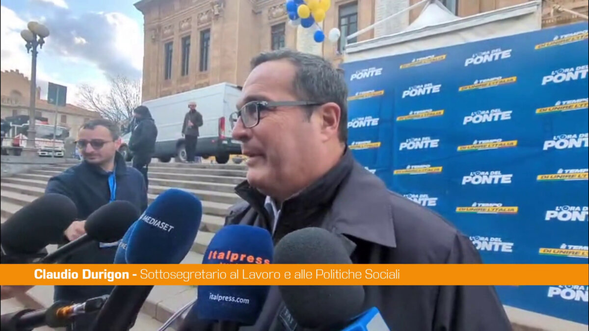 MESSINA (ITALPRESS) – “Il Ponte sullo Stretto è un’opera strategica e rappresenta una fase determinante per l’Italia, sia dal punto di vista infrastrutturale che economico”. Lo ha detto il sottosegretario di Stato Claudio Durigon, intervenendo a Messina alla manifestazione “L’ora del Ponte”. “Collegare stabilmente la Sicilia al continente e all’Europa è una priorità – ha aggiunto -. C’è una chiara volontà da parte del Governo e del Parlamento di portare avanti questo progetto”.
