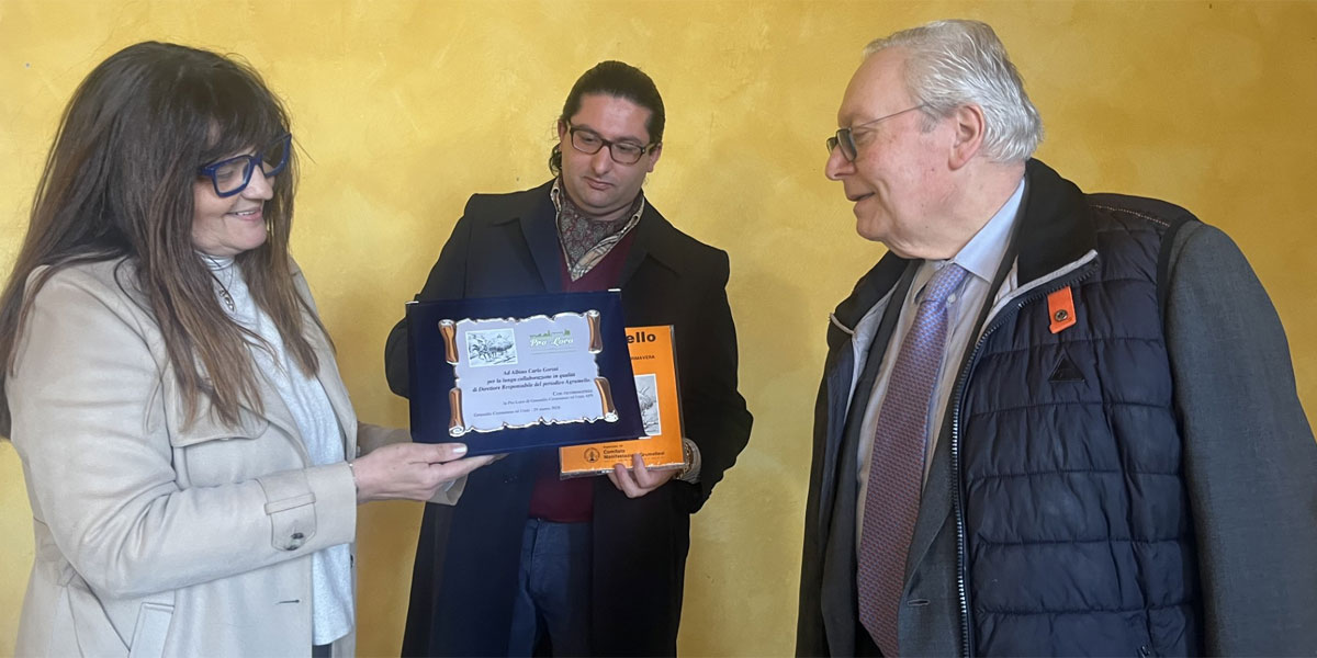Momento particolare quello riservato ai ringraziamenti a nome dell’intero consiglio, indirizzati ad Albino Gorini, che ha lasciato la carica, ricoperta fin dal primo numero uscito nel 1980, di direttore responsabile del periodico della Pro Loco “Agrumello”. Segno tangibile della riconoscenza dell’associazione, una targa che riporta proprio l’immagine di copertina del primo numero, il disegno di un seminatore di Giovanni Granata, pittore grumellese.
