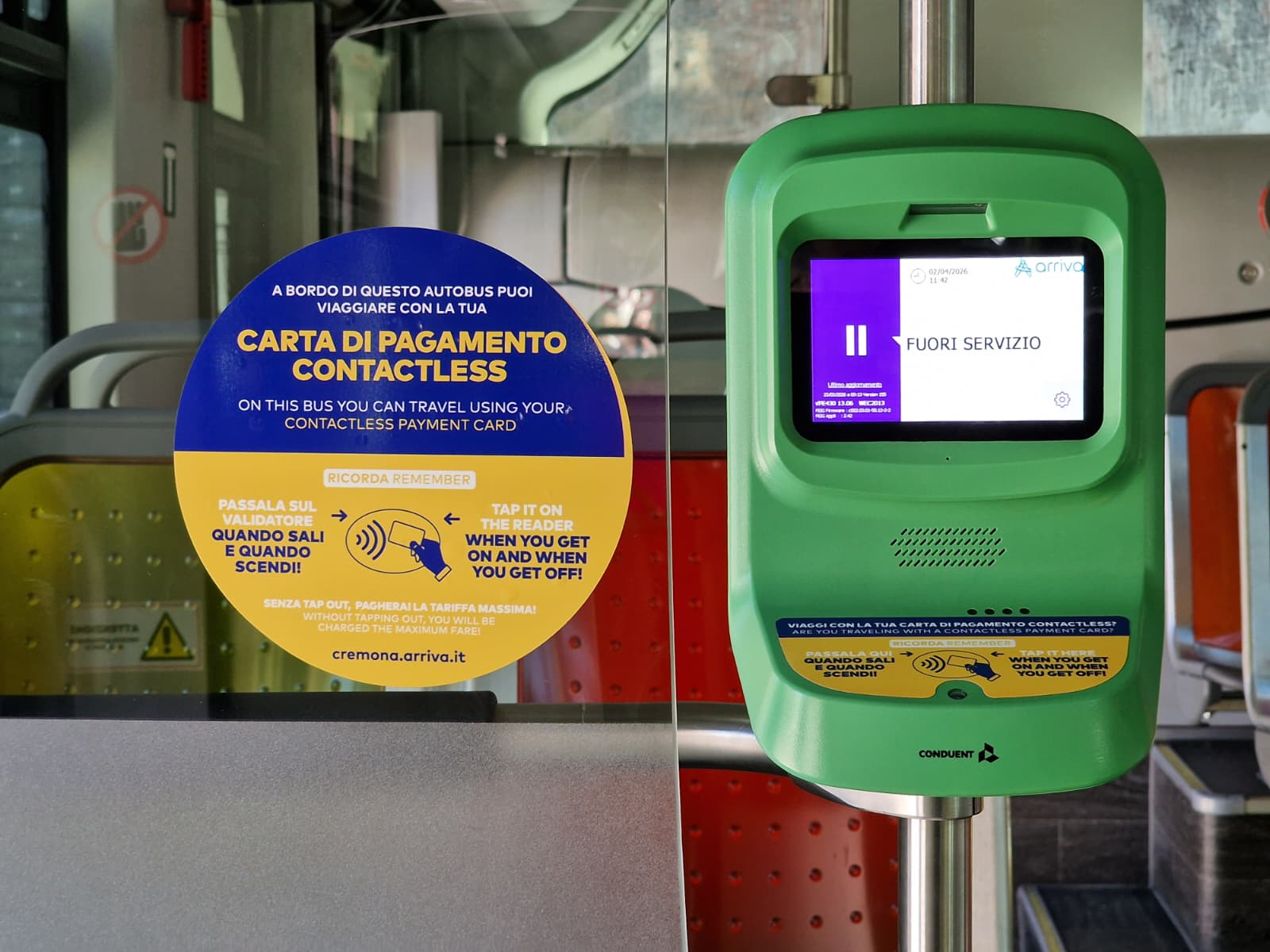 Per usare il nuovo sistema basterà, una volta saliti sull’autobus, avvicinare la propria carta di pagamento (Visa, Mastercard, Amex o Maestro), il telefono, lo smart watch, o un device dotato di NFC tramite Google Pay, Apple Pay o Samsung Pay, al validatore e attendere il segnale acustico e il messaggio di conferma sul display. Per un corretto addebito è necessario passare la carta sul validatore quando si sale e quando si scende dall’autobus per usufruire della tariffa corretta per la tratta percorsa, senza nessun costo extra.
