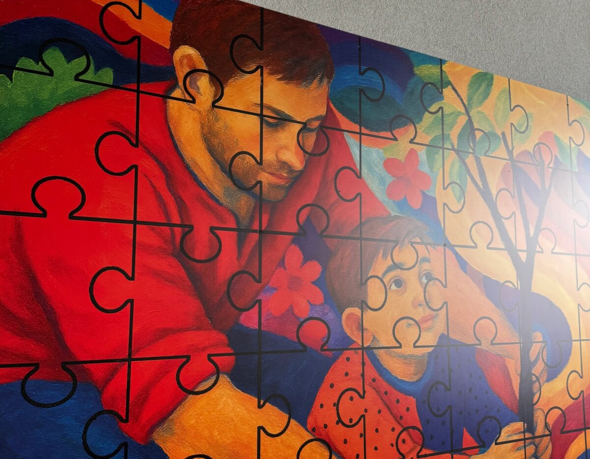 Questa visione si trasforma in un’installazione a puzzle, dove ogni elemento trova il proprio posto contribuendo a un insieme armonico. Il significato è chiaro: ogni persona, con le proprie caratteristiche, ha un ruolo essenziale e non deve essere forzata, ma accompagnata e valorizzata.