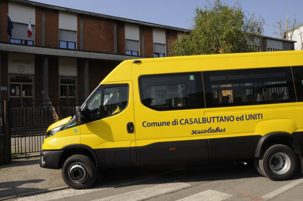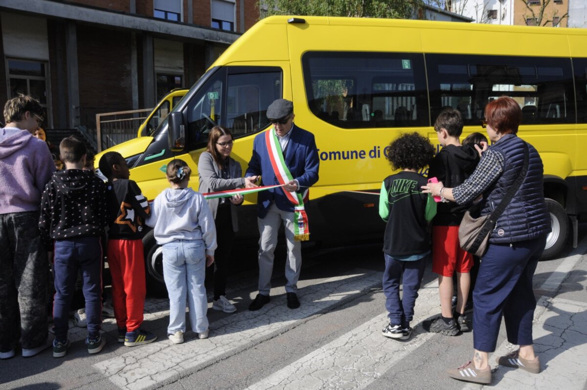 A Casalbuttano scuola più sostenibile: taglio del nastro per il nuovo scuolabus