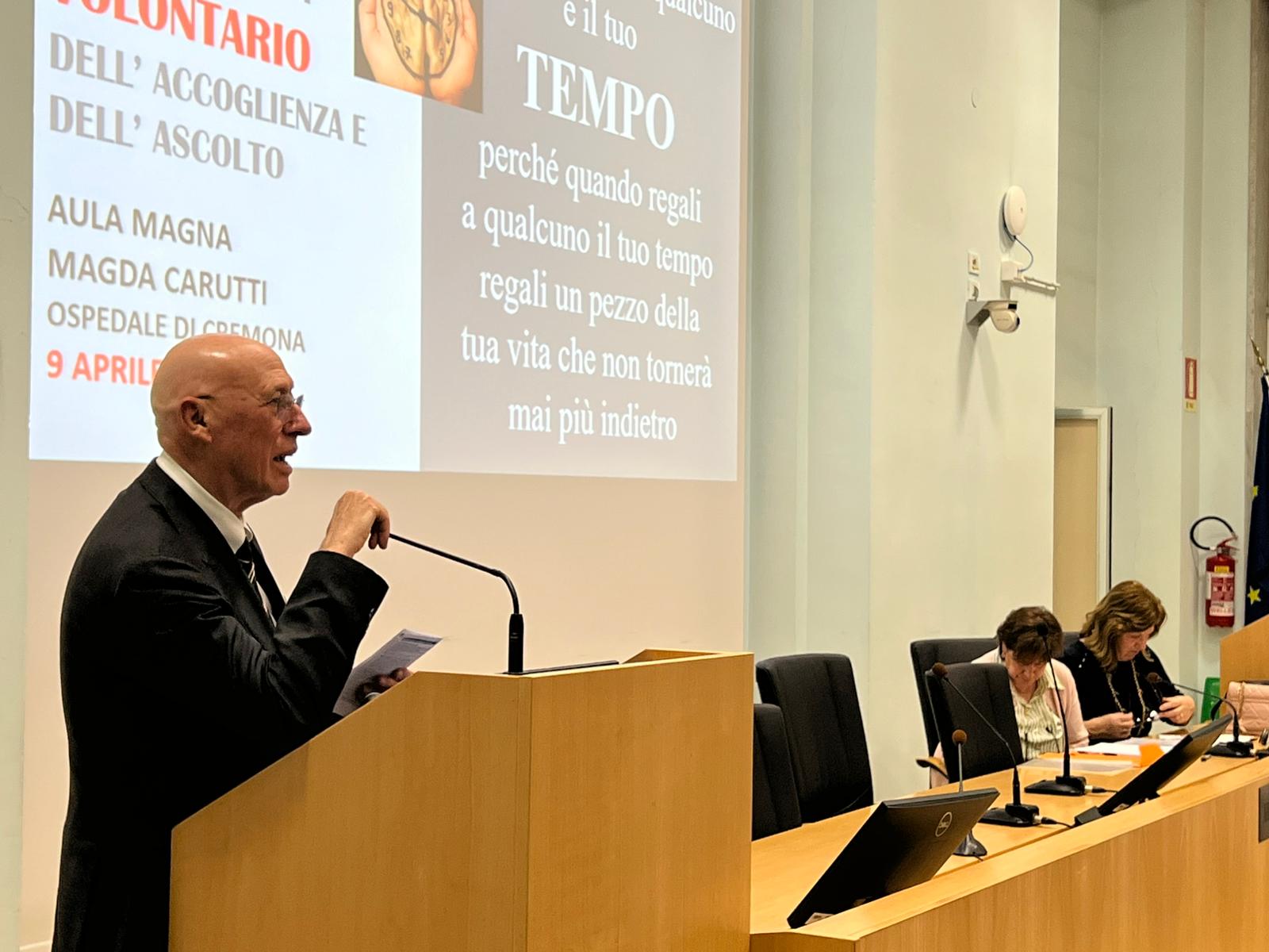 Claudio Bodini, Presidente dell’Associazione “Siamo Noi”, ha spiegato: “Organizziamo tutti gli anni questi corsi per reclutare volontari per la nostra attività di ascolto e di accoglienza, che svolgiamo nei vari reparti dell’Ospedale. Noi nasciamo nelle sale d’attesa del Pronto Soccorso, per la precisione nel 2013, quindi abbiamo compiuto già 13 anni. Siamo attivi anche nelle case di riposo, a Castelverde e a Cremona Solidale, ma siamo presenti anche all’hub vaccinale. Durante il periodo del Covid abbiamo partecipato all’organizzazione dei flussi delle persone che dovevano vaccinarsi, reclutando all’epoca ben 600 volontari. Il corso è teso a formare le persone nella relazione d’aiuto, nell’accoglienza e nell’ascolto delle persone che accedono ai reparti. C’è una bellissima collaborazione con gli operatori sanitari. Alcuni volontari sono con noi da più di 10 anni. Il corso va in scena nei mesi di aprile e maggio, in particolare nelle serate del martedì e del giovedì, dalle ore 18 alle ore 20. E’ un corso molto bello, che riempie la vita di tutti noi”.
