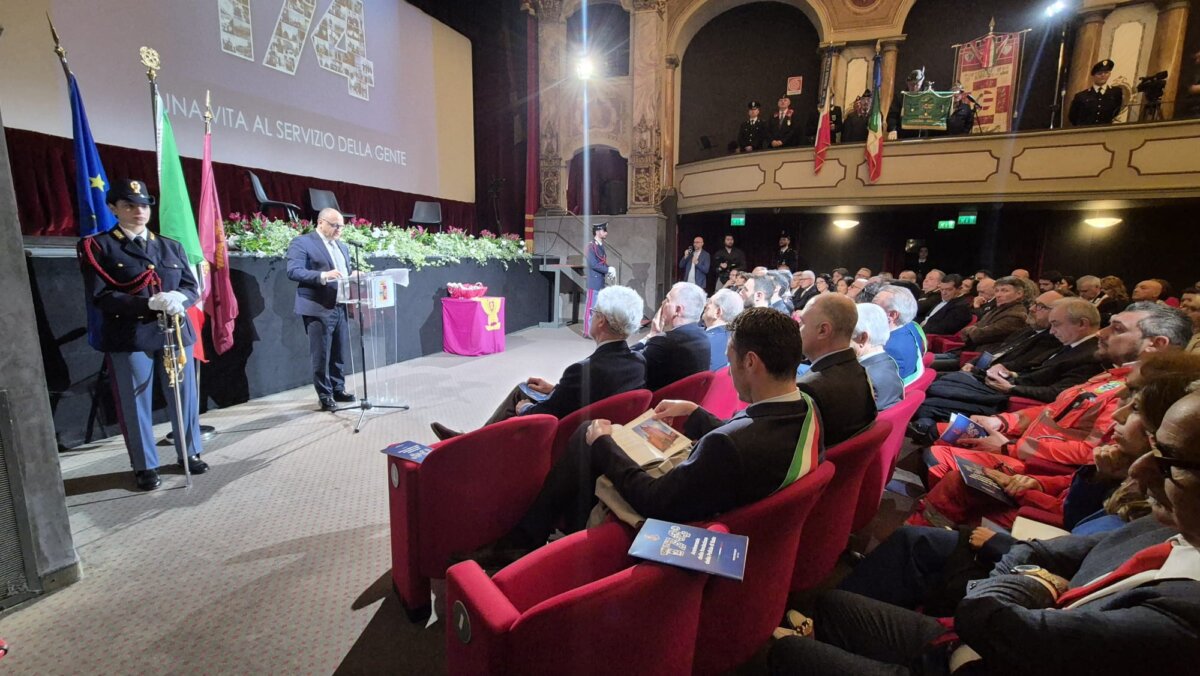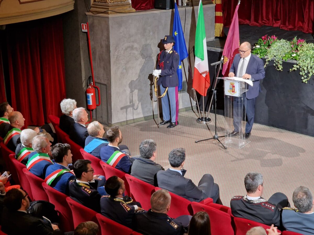 La splendida cornice del teatro Filo di Cremona ha ospitato, venerdì mattina, la Festa della Polizia, nell’occasione del 174° anniversario di fondazione. Una cerimonia solenne, alla presenza di tutte le autorità civili, militari e religiose del territorio. Erano presenti, tra gli altri, il prefetto Antonio Giannelli, l’assessore alla sicurezza del Comune di Cremona Santo Canale, il comandante dei carabinieri, Paolo Sambataro, il comandante della Guardia di Finanza, Massimo Dell’Anna, il comandante dei vigili del fuoco, Pier Nicola Dadone.