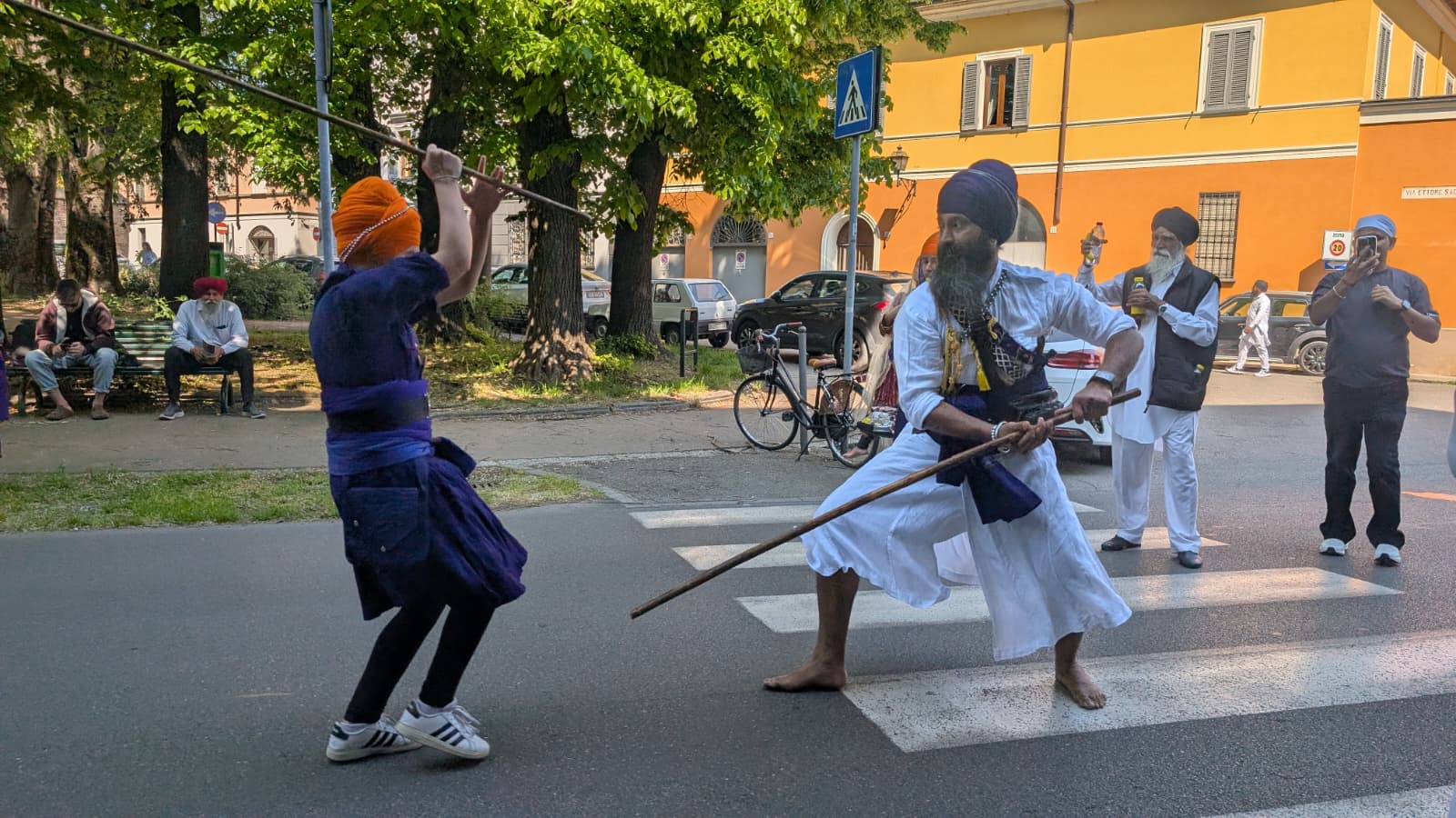 Non sono però mancati i riti tradizionali che rendono il corteo amatissimo anche dai cremonesi: in apertura giovani e adulti impegnati nelle dimostrazioni di arti marziali; subito dopo alcuni fedeli, a piedi nudi e con la scopa in mano, a spazzare l’asfalto per preparare il passaggio del Libro Sacro, che contiene i dettami della religione sikh.