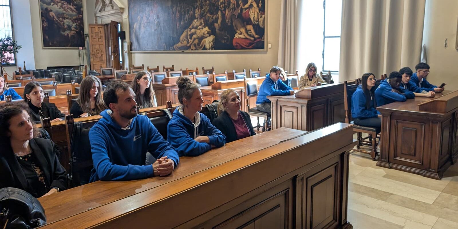 Dopo le foto di rito, Virgilio ha vestito i panni di “Cicerone”, guidando ragazzi e insegnanti tra le bellezze artistiche di Palazzo Comunale.