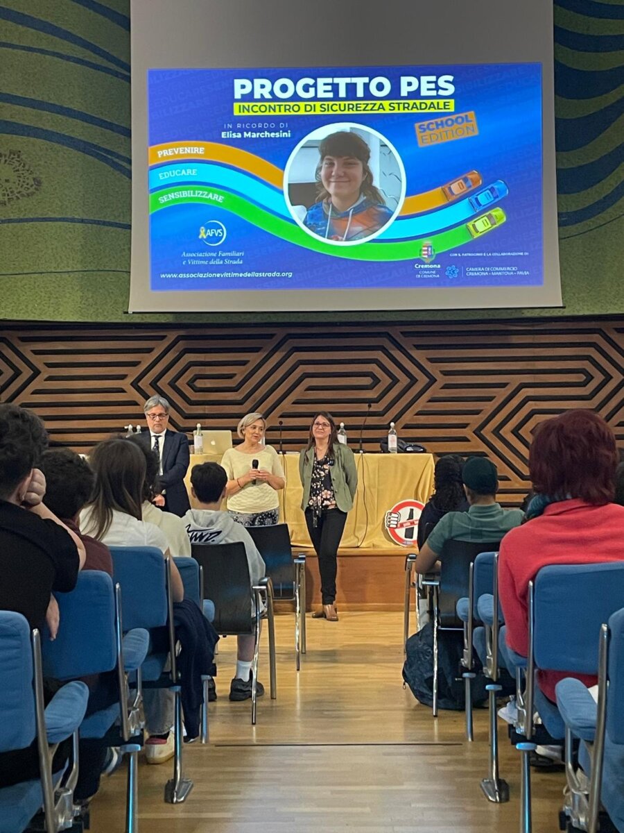 Oltre 350 studenti di otto scuole medie e superiori di Cremona hanno affollato oggi Piazza Stradivari e sono stati protagonisti del Progetto PES – Prevenire, Educare, Sensibilizzare riportando al centro il tema della sicurezza stradale. Un’iniziativa promossa da AFVS – Associazione Familiari e Vittime della Strada ETS, in memoria di Elisa Marchesini, la quindicenne scomparsa il 31 gennaio 2025 in seguito a un incidente stradale avvenuto in Via Dante che ha trasformato una tragedia in un’azione concreta di prevenzione rivolta ai più giovani e alla comunità.