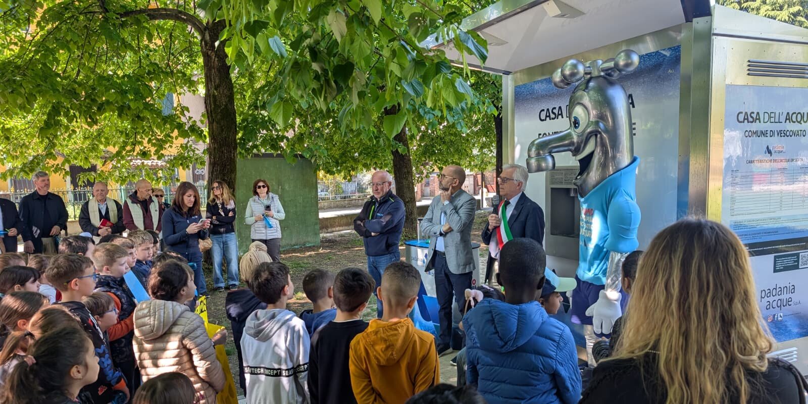 Al taglio del nastro erano presenti il presidente e l’amministratore delegato di Padania Acque, insieme al sindaco di Vescovato Alfredo Gorni e a una trentina di bambini della scuola primaria locale.