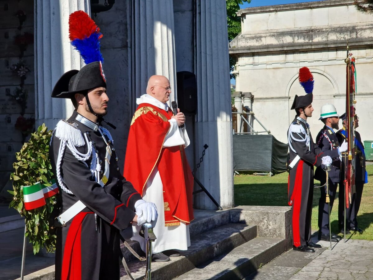 Si sono aperti al Cimitero monumentale di Cremona i festeggiamenti per l’81esimo anniversario della Liberazione d’Italia, con la celebrazione della Santa Messa all’aperto, nei pressi della Cappella ai Caduti, officiata dal vicario episcopale don Antonio Bandirali, alla presenza di tutte le autorità cittadine civili e militari, a partire dal sindaco Andrea Virgilio e dal prefetto Antonio Giannelli.