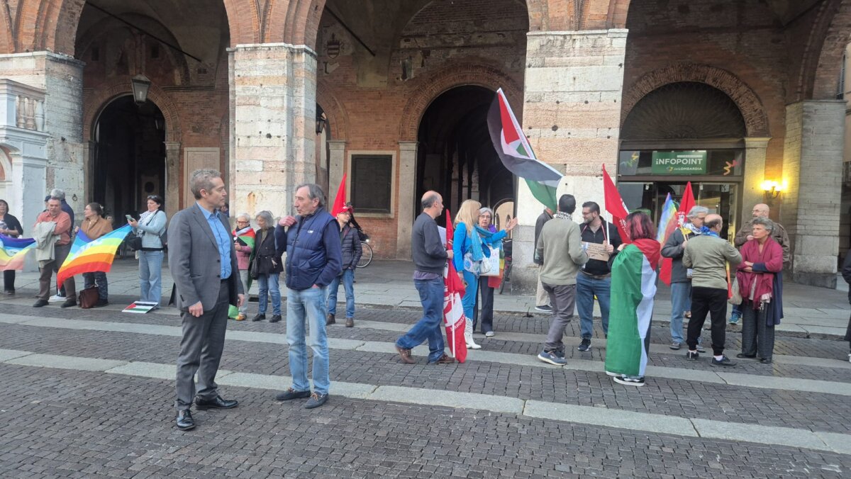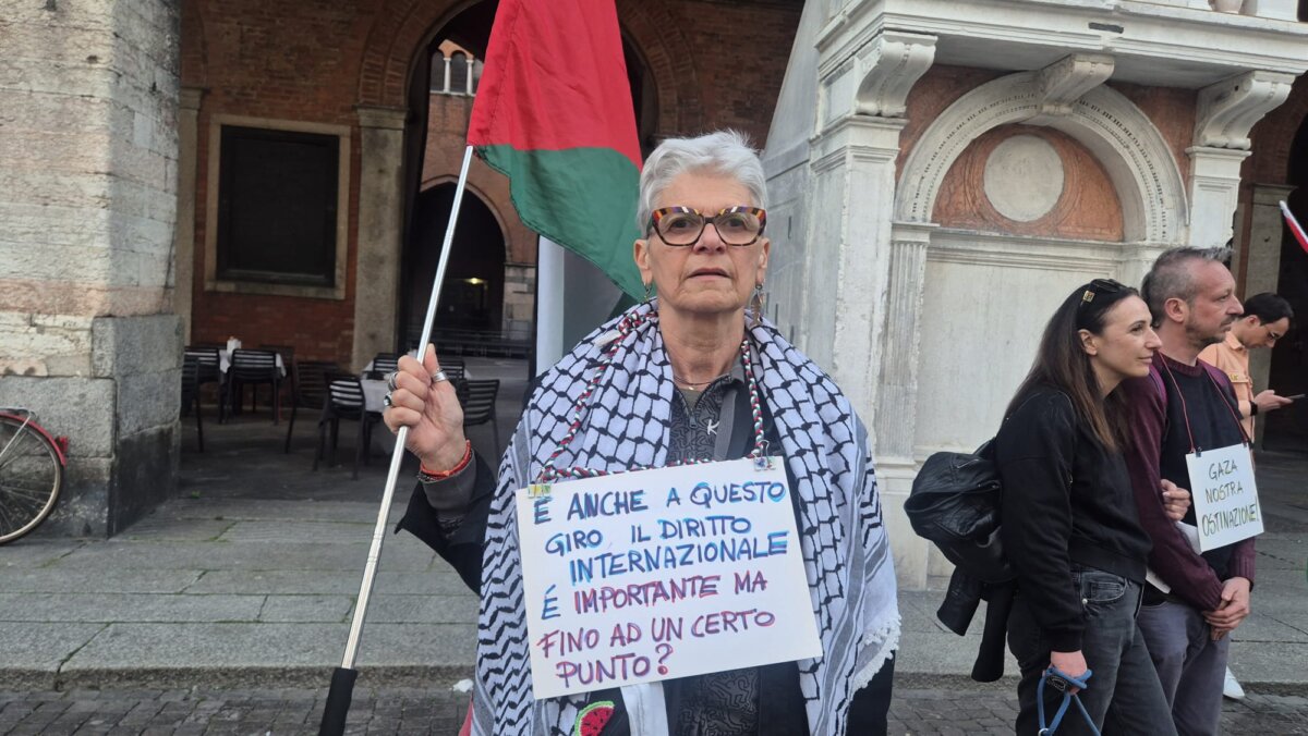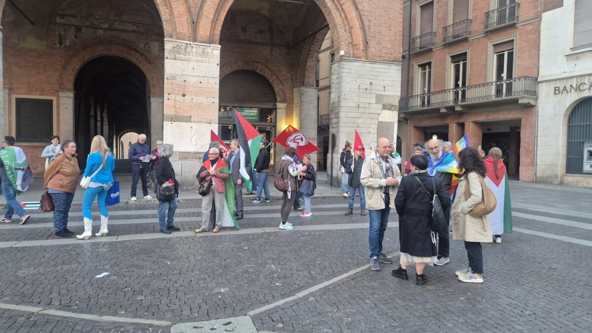 Un presidio silenzioso ma partecipato in piazza Duomo a Cremona, per accendere i riflettori su quanto sta accadendo in queste ore nel Mediterraneo. La manifestazione, organizzata da associazioni e formazioni politiche sensibili al tema, ha voluto portare il proprio sostegno alla Global Food Flotilla, la missione civile impegnata nel trasporto di aiuti alimentari verso le popolazioni colpite da crisi umanitarie.
