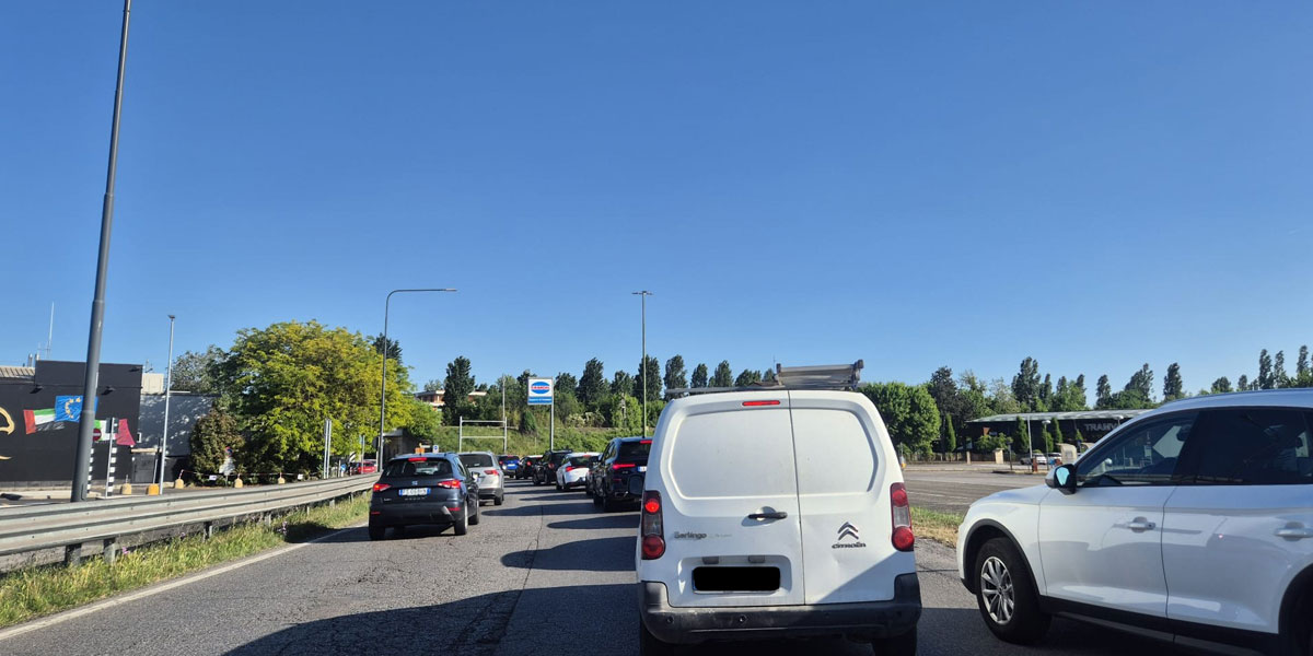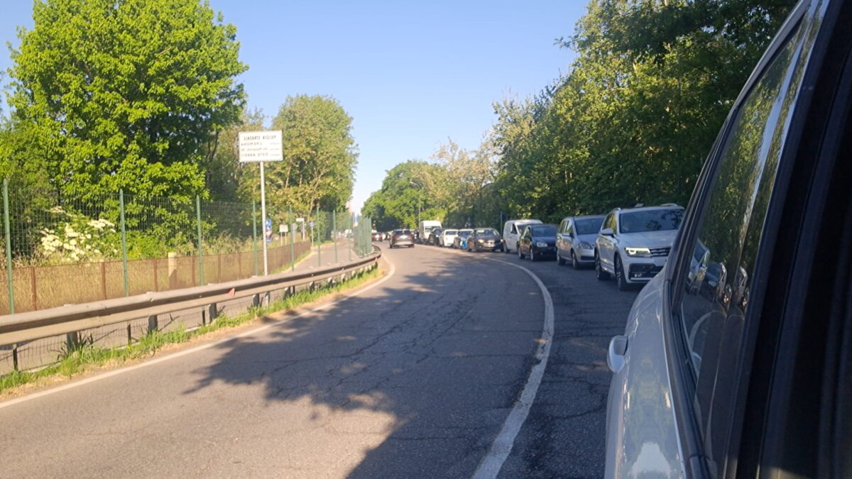 La coda di mezzi in via Eridano