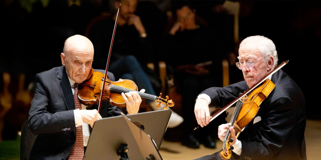 In contrasto con il clima introspettivo di Schönberg, il Quartetto per pianoforte e archi op. 47 di Robert Schumann, eseguito da Bruno Giuranna con allievi Stauffer e la pianista Clara Dutto, restituisce tutta l’urgenza e la vitalità della scrittura romantica, in un intreccio dinamico tra pianoforte e archi che alterna slancio, inquietudine e la più intima cantabilità.