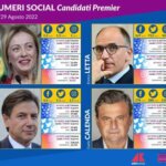 Nazionali 30 Ago 2022 Elezioni 2022 e social: podio a Meloni-Conte. Calenda compulsivo, Letta non sfonda
