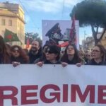 Nazionali 14 Dic 2024 “Siamo 50.000”, a Roma il corteo contro il ddl sicurezza. Manifesto con bacio Meloni-Mussolini