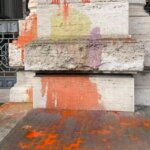 Nazionali 22 Nov 2024 Imbrattata facciata ministero Istruzione, manifestanti con striscione ‘Bruciamo tutto’