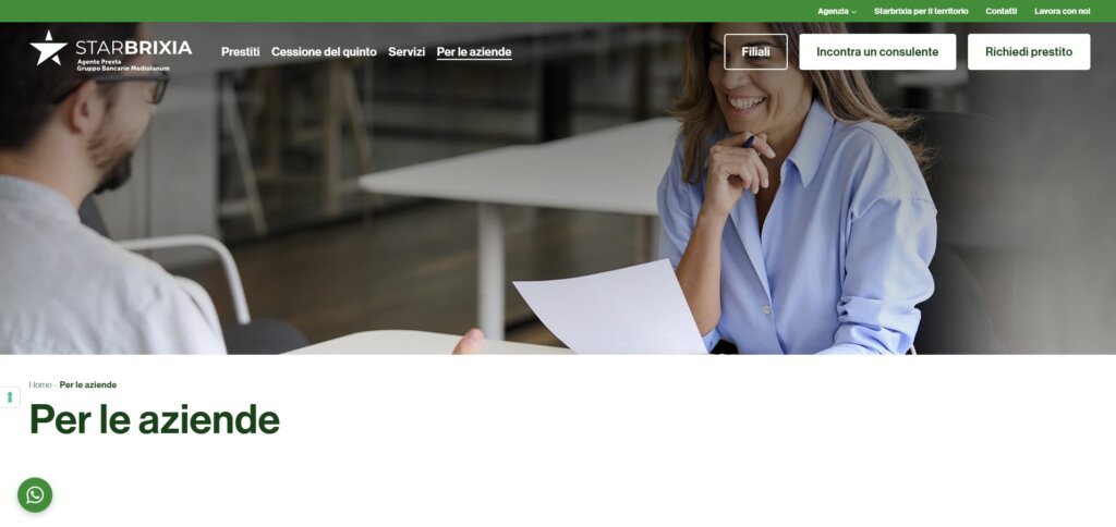 - PER LE AZIENDA: serve per offrire ai propri collaboratori finanziamenti su misura per dipendenti con condizioni agevolate e contratti trasparenti. La consulenza sui prestiti in azienda permette di arricchire il welfare aziendale con prestiti per dipendenti aziendali in Lombardia, semplificando processi e garantendo risparmio reale per tutti.